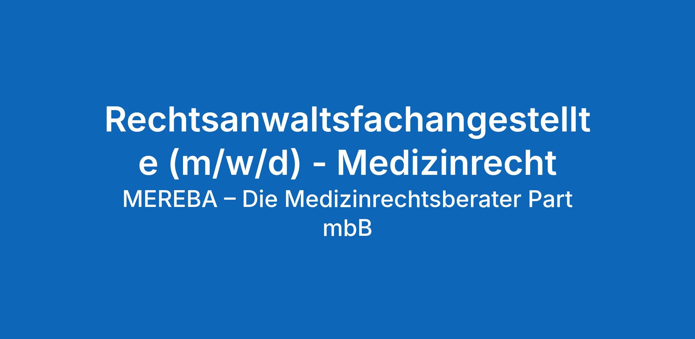 Rechtsanwaltsfachangestellte (m/w/d) - Medizinrecht