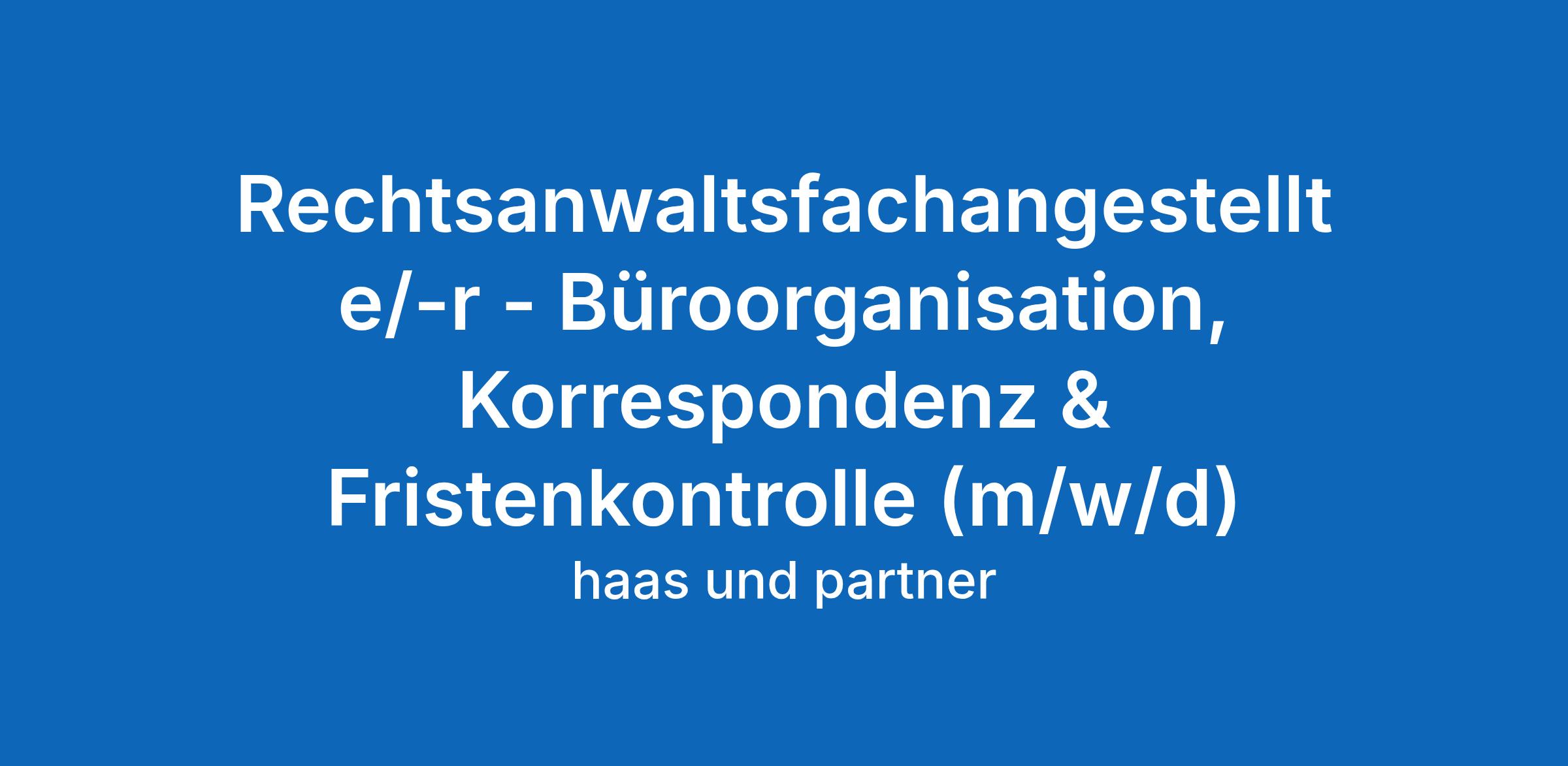 - Fristen- und Terminmanagement: Sie überwachen eigenverantwortlich Fristen und stellen deren Einhaltung sicher.