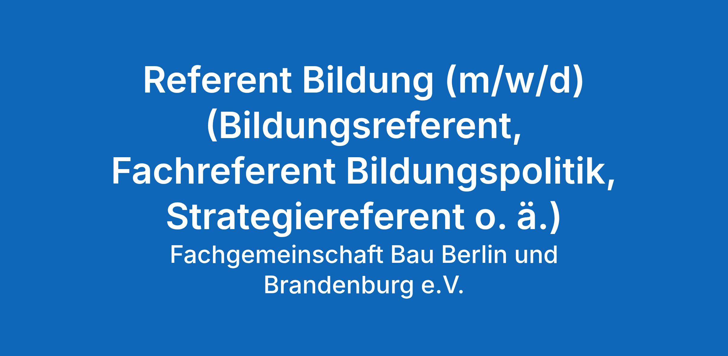 (Bildungsreferent, Fachreferent Bildungspolitik, Strategiereferent o. ä.)
