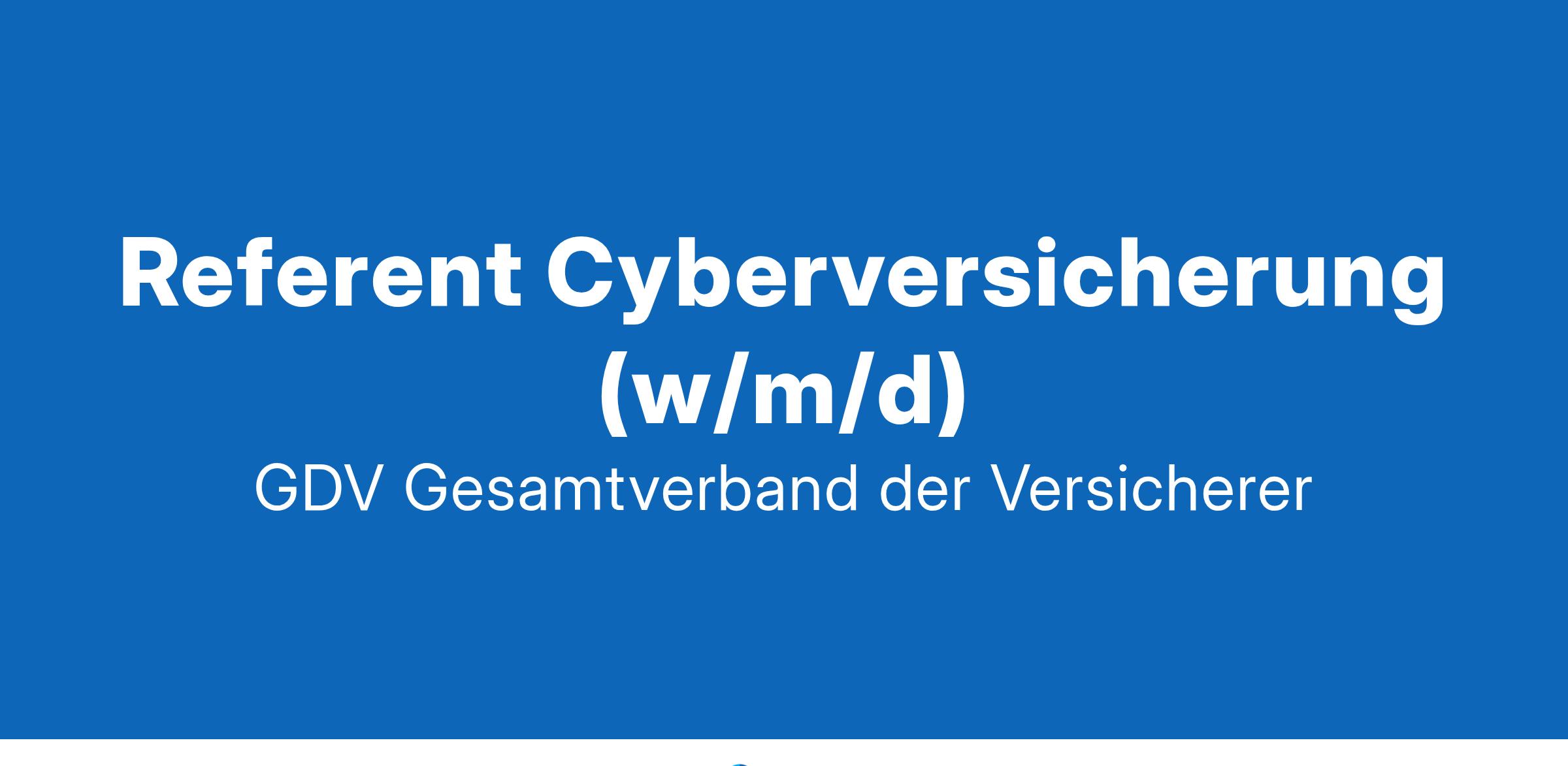 Referent Cyberversicherung (w/m/d)Der Gesamtverband der Deutschen Versicherungswirtschaft (GDV) in Berlin ist die Dachorganisation der Versicherer in Deutschland. Gegenüber Parlament, Regierung und Öffentlichkeit - national wie auf europäischer Ebene - vertreten wir die Interessen einer spannenden, leistungsfähigen und vielfältigen Branche.