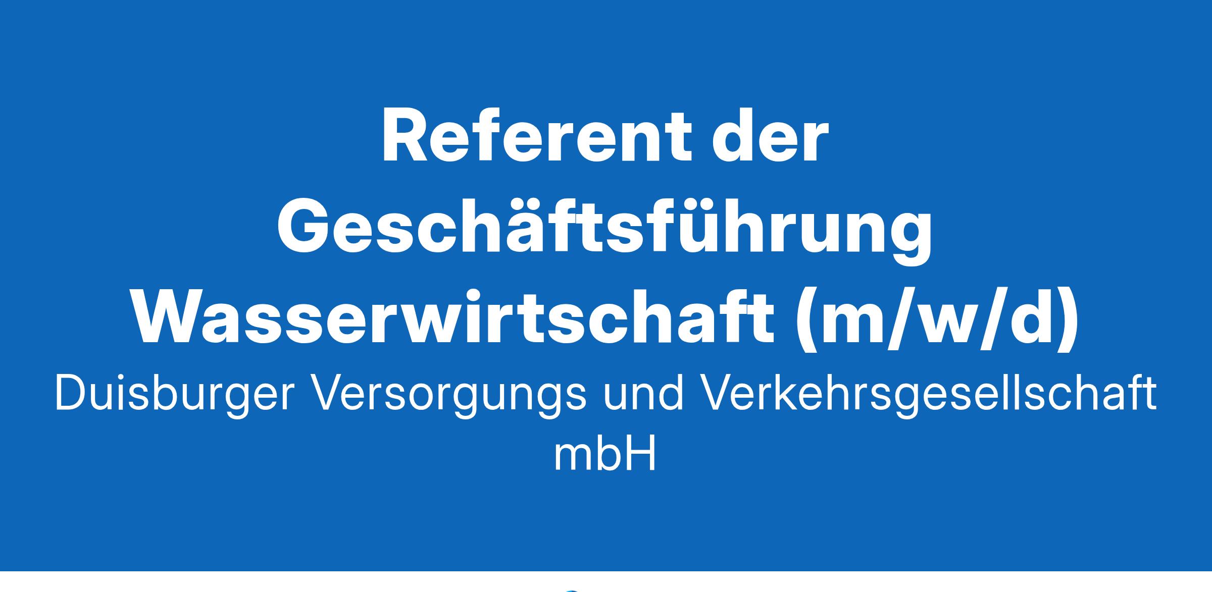 Die Netze Duisburg GmbH bündelt, als Tochter der Stadtwerke Duisburg AG, Planung, Betrieb, Ausbau und Instandhaltung der städtischen Versorgungsnetze. Wir sind verantwortlich, dass über 250.000 Haushalte, Unternehmen und Institutionen in der Region sicher und zuverlässig mit Strom, Wasser, Gas und Fernwärme aus unseren leistungsstarken Netzen versorgt werden. Wir machen unsere Infrastruktur fit für die Anforderungen der Zukunft und gestalten somit aktiv die Energiewende in unserer Stadt. Dafür setzen wir jeden Tag auf die Motivation, Neugier und die ganz persönlichen Fähigkeiten unserer Expert innen und Expert en. In unseren vielfältigen Tätigkeitsfeldern bieten wir ihnen ein modernes Arbeitsumfeld, ein breites Angebot zur Weiterentwicklung und Fortbildung, – auch für Quereinsteiger – eine attraktive Tarifvergütung und viele weitere Benefits. Deine Aufgaben: Du analysierst den Markt für unsere Gesellschaft zusammen mit der GELSENWASSER AG und identifizierst Wachstumschancen, z. B. durch Kooperationen, Übernahmen oder neue Geschäftsfelder Auf Basis deiner Bewertung von Chancen (technisch, rechtlich, wirtschaftlich) entwickelst du fundierte Handlungsempfehlungen für die Geschäftsführung Du planst und führst Lobbyarbeit durch – von der Recherche über den Aufbau bis hin zur Pflege wichtiger Kontakte in Politik und Wirtschaft Du pflegst Beziehungen zu entscheidenden Stakeholdern und vertrittst unsere Interessen in Verbänden Du schreibst die Entwicklungsstrategie der WBNW in enger Abstimmung mit der Geschäftsführung fort Dein Profil: Du bringst einen Masterabschluss aus einem betriebswirtschaftlichen, juristischen oder ingenieur-/naturwissenschaftlichen Studiengang mit Berufserfahrung in der Wasserwirtschaft oder verwandten Bereichen zeichnet dich aus Du kannst Erfolge in der Leitung von Projekten nachweisen Kommunikationsstärke und Verhandlungsgeschick gehören zu deinen Stärken Dein Lebensmittelpunkt liegt idealerweise in Duisburg oder Umgebung Unsere Benefits: Ein spannendes Aufgabengebiet mit viel Gestaltungsspielraum, in dem du persönlich wachsen kannst Eine attraktive Vergütung gemäß Tarifvertrag inklusive 13. Monatsgehalt, betriebliche Altersvorsorge und vermögenswirksame Leistungen Zusatzkrankenversicherung sowie umfassende Fitness- und Gesundheitsangebote Individuelle Weiterbildungs- und Entwicklungsmöglichkeiten in einem zukunftsorientierten Unternehmen Interesse geweckt? Dann bewirb dich - unter Angabe deiner Gehaltsvorstellung und des frühesten Eintrittsdatums - online über den nachfolgenden Button „Online bewerben“. Mit der Einsendung deiner Bewerbungsunterlagen erklärst du dich damit einverstanden, dass diese als Kopie zu Nachweiszwecken intern gespeichert werden. Weitere Informationen zum Thema Datenschutz kannst du auf unserer Homepage entnehmen. Weitere Informationen zum Thema Karriere finde st du unter: [Website-Link gelöscht]/karriere
