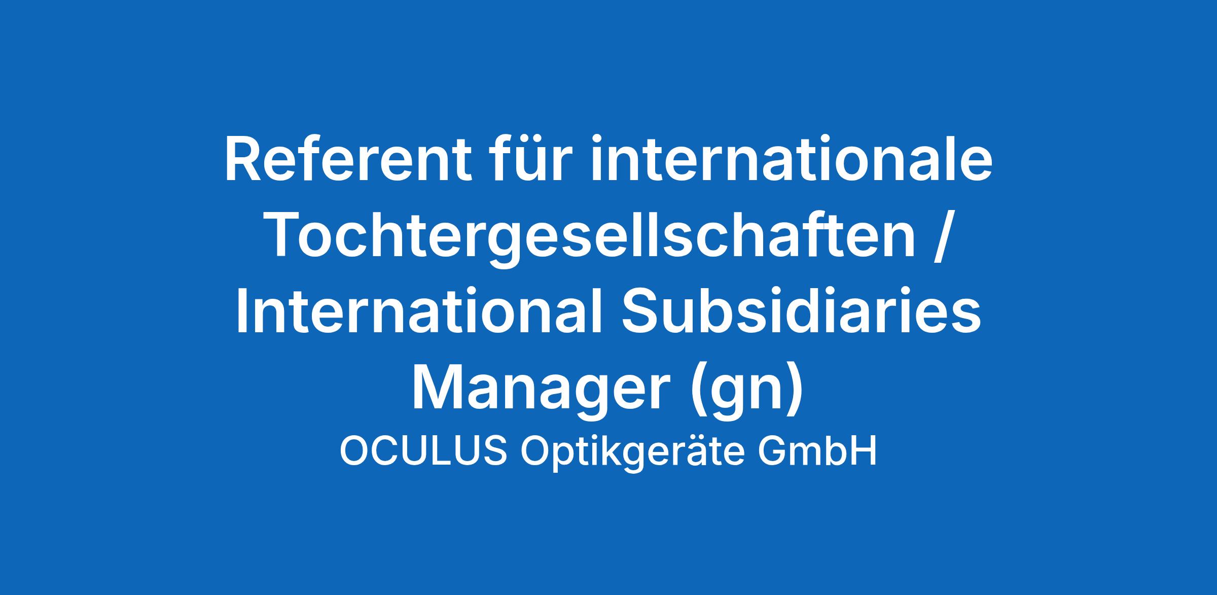 Referent für internationale Tochtergesellschaften / International Subsidiaries Manager (gn)