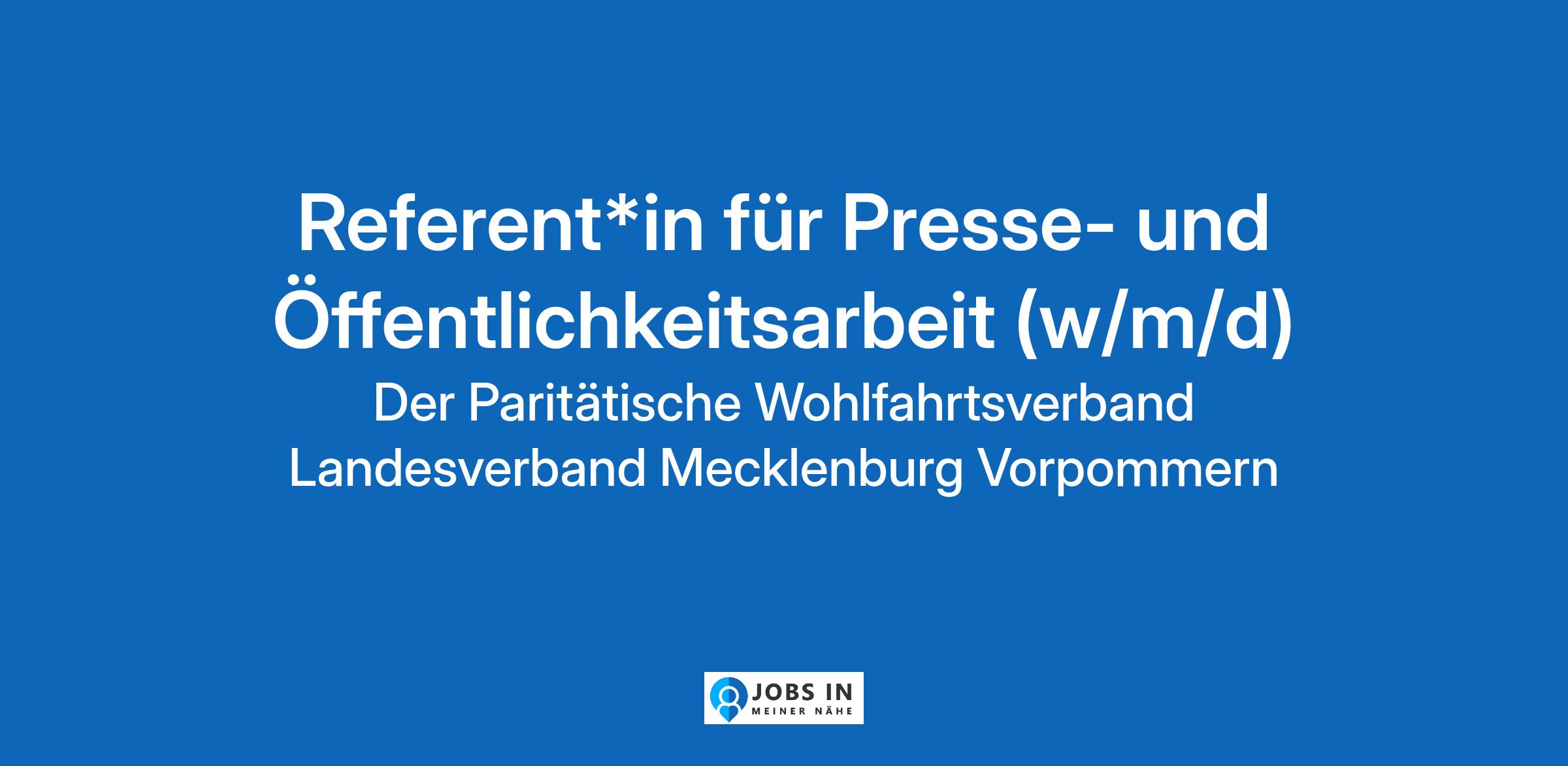 Unter dem Dach des PARITÄTISCHEN Wohlfahrtsverbandes Landesverband Mecklenburg-Vorpommern haben sich rund 210 gemeinnützige Organisationen zusammengeschlossen. Der Paritätische berät und unterstützt seine Mitglieder in allen Bereichen der Sozial-, Jugend- und Gesundheitshilfe und vertritt deren I... Kommunikation;PR;Pressemitteilungen;Schreiben von Reden;EDV;PR;Selbstbewusstsein;Social Media;Journalismus;Kommunikation;Pressetermine;Newsletter;Bünde;Digitale Medien;Geschäftsreisen;Pressen;Analyse Original Stellenanzeige auf StepStone.de – Jetzt Jobagent bei StepStone einrichten und Traumjob finden! https://bit.ly/2KOagYD Mehr Informationen zu Arbeitgebern, Gehaltsdaten und Karrieretipps finden Sie auf StepStone.de