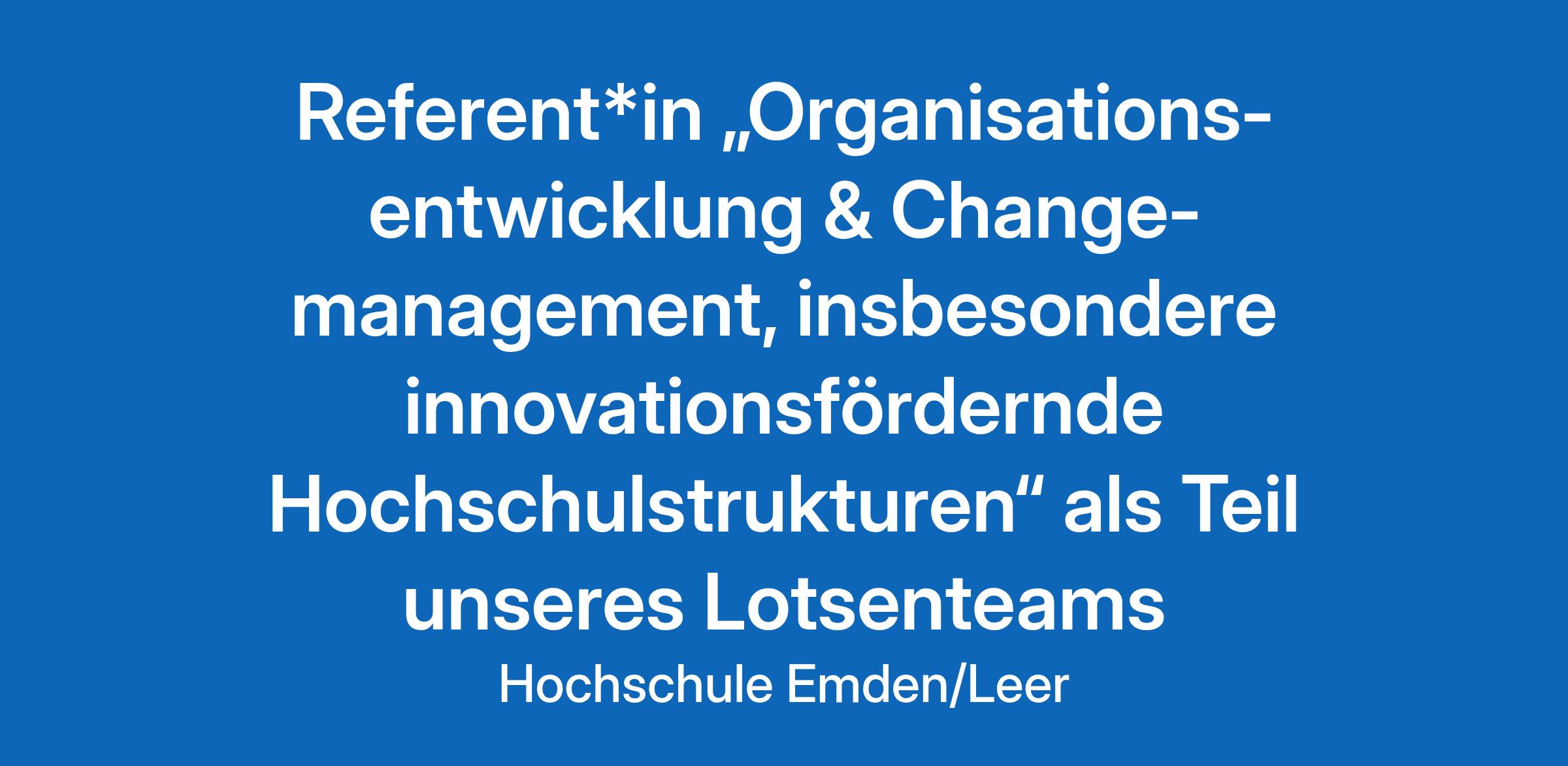 Referent*in "Organisationsentwicklung & Changemanagement, insbesondere innovationsfördernde Hochschulstrukturen" als Teil unseres Lotsenteams für den Bildungswandel in Emden (entsprechend der geforderten Qualifikation bis E 13 TV‑L, 100 %)