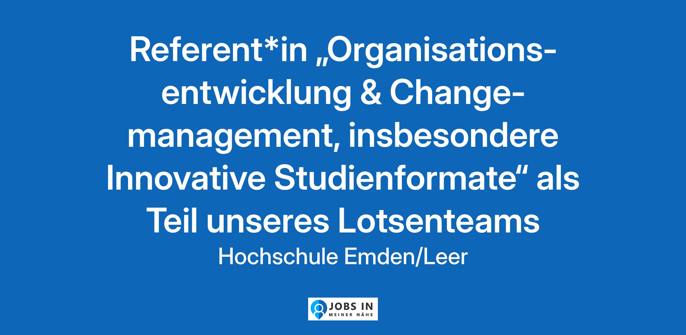 Referent*in "Organisationsentwicklung & Changemanagement, insbesondere Innovative Studienformate" als Teil unseres Lotsenteams für den Bildungswandel in Emden (entsprechend der geforderten Qualifikation bis E 13 TV‑L, 75 %)