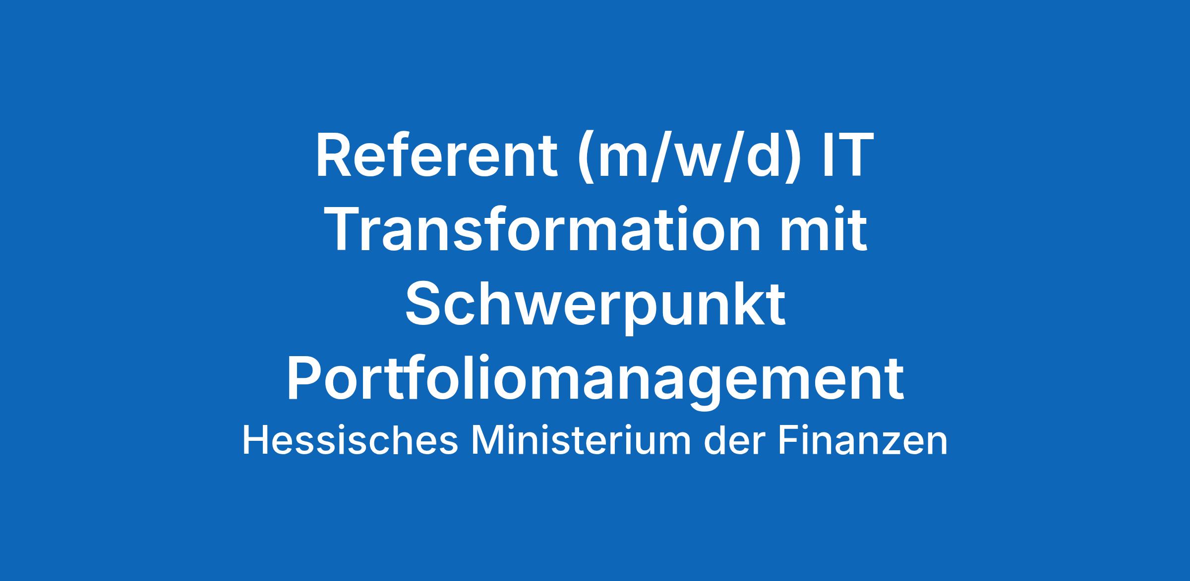 Referent (m/w/d) IT Transformation mit Schwerpunkt Portfoliomanagement