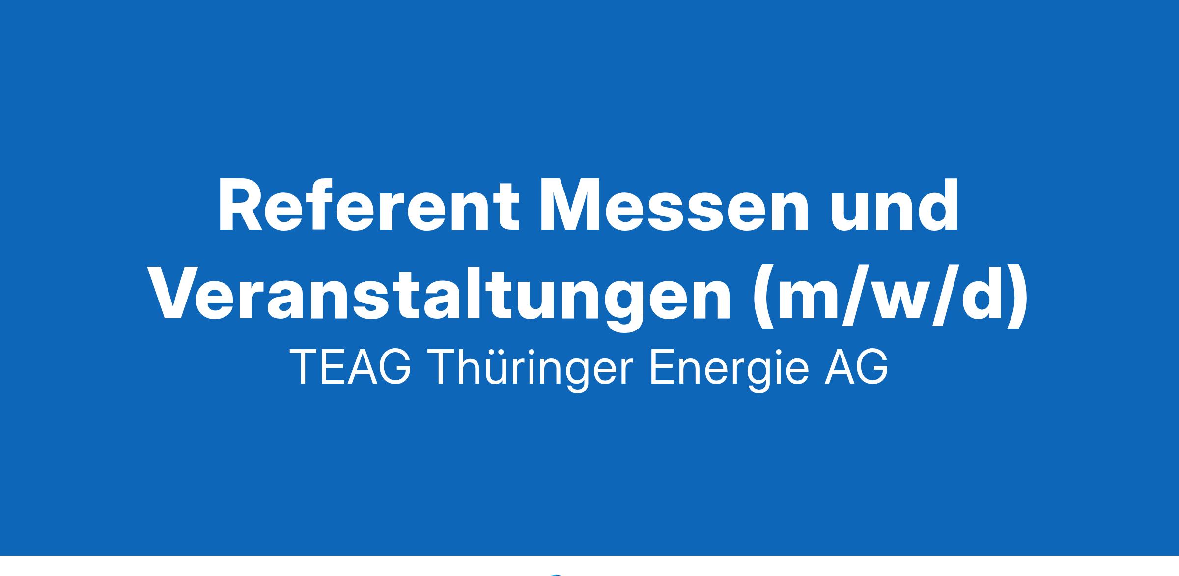 Die TEAG Thüringer Energie AG ist das führende Energiedienstleistungsunternehmen im Freistaat Thüringen. Hauptgeschäftsfelder sind die Erzeugung von Strom und Wärme sowie der Vertrieb von Energie sowie Dienstleistungen für Strom, Gas, Wärme, Licht und Breitband. Die TEAG-Tochterunternehmen betreiben zudem ein flächendeckendes Strom- und Gasnetz in Thüringen sowie ein Glasfasernetz für leistungsfähige Breitbandkommunikation. Wir suchen für unseren Bereich Kommunikation/Öffentlichkeitsarbeit, in Erfurt einen Referent Messen und Veranstaltungen m/w/d Ihre neue Stelle Eigenverantwortliche Konzeption, Organisation, Durchführung, Bewerbung, Kommunikation und Controlling von Image-, Kunden-, Fach- und Unternehmensveranstaltungen Eigenverantwortliche Konzeption, Organisation, Durchführung und Controlling von Messeauftritten auf Kunden-, Fach- und Unternehmensmessen Kontaktpflege und Betreuung von Künstlern, Agenturen, Caterern, externen und internen Auftraggebern Steuerung von Dienstleistern für die Promotion und Durchführung von Veranstaltungen Recherche von neuen Veranstaltungsmöglichkeiten, Künstlern, Locations Unterstützung bei cross-medialen Kommunikationsprojekten Ihre Talente und Fähigkeiten Bachelor mit betriebswirtschaftlicher Ausrichtung oder vergleichbare Fachrichtung Erfahrungen im Bereich Event- und Messemanagement Anwenderkenntnisse in der Standardsoftware (MS-Office, Excel, PowerPoint) Bereitschaft zu flexiblen Arbeitszeiten, je nach Eventplanung und -durchführung, auch an Abenden, Wochenenden und Feiertagen erforderlich Bereitschaft für körperliche Tätigkeiten (Aufbau, Abbau, Transport etc.) Eigenverantwortlicher Arbeitsstil Unternehmerisches Denken und Handeln Kommunikative und soziale Kompetenz Teamfähigkeit Sachliches und freundliches Auftreten Führerschein Klasse B Beschäftigungsverhältnis Vollzeit, 38 Stunden pro Woche, unbefristet Was bieten wir an: Umfangreiche Einarbeitung Flexible Arbeitszeiten (nach Servicezeit) Attraktive Entlohnung nach Tarif, 13. Monatsgehalt 30 Tage Urlaub sowie Heiligabend und Silvester frei Berufliche Aufstiegsmöglichkeiten (Fort- und Weiterbildung über die eigene Akademie) 2 Tage pro Woche Homeoffice möglich (entsprechend unserer Betriebsvereinbarung) Modernste technische Ausrüstung und spannende Großprojekte Fahrradleasing und kostenloses Stromtanken im Rahmen der gesetzlichen Regelungen Betriebliche Altersvorsorge und Berufsunfähigkeitsversicherung Betriebskindergarten und Betriebsarztpraxis Bonus bei Bezug von TEAG-Produkten Attraktive Prämie bei Mitarbeiterempfehlung Die Integration von Menschen mit Behinderung entspricht unserem Selbstverständnis. Zur Wahrung Ihrer Interessen können Sie uns gern bereits im Rahmen der Bewerbung mitteilen, ob eine Schwerbehinderung oder Gleichstellung vorliegt. Sollten Sie Interesse an der o. g. Stelle haben, dann bewerben Sie sich bitte auf unserem Portal. Wir freuen uns auf Ihre Bewerbung. https://www.youtube.com/watch?v=itLYytVSgGE Share: