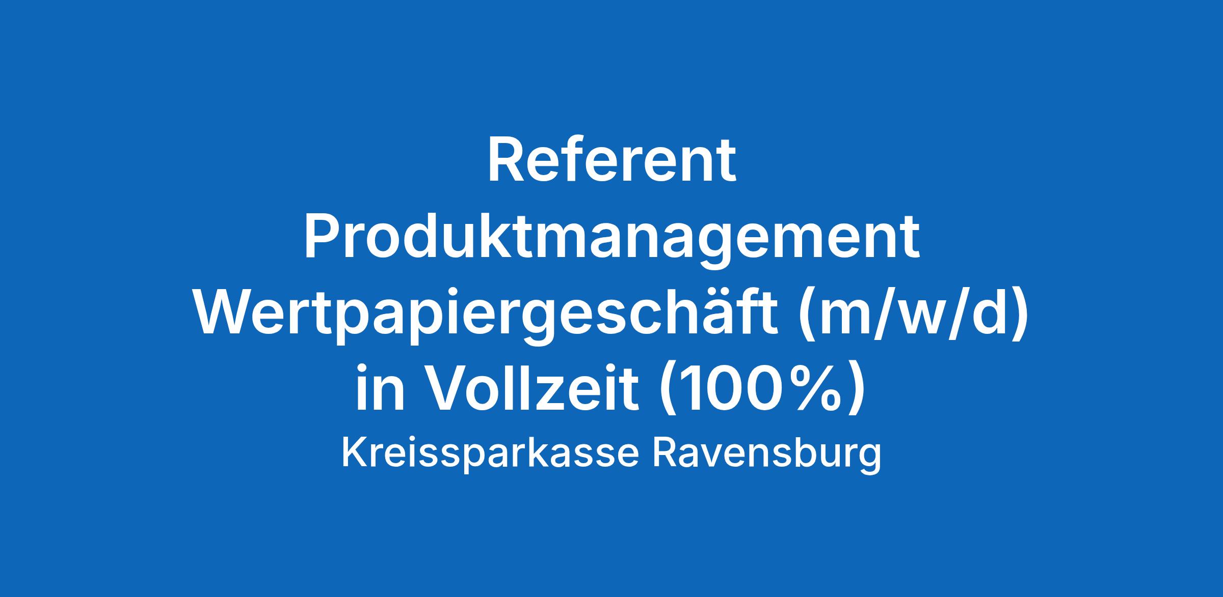 Referent Produktmanagement Wertpapiergeschäft (m/w/d) in Vollzeit (100%).