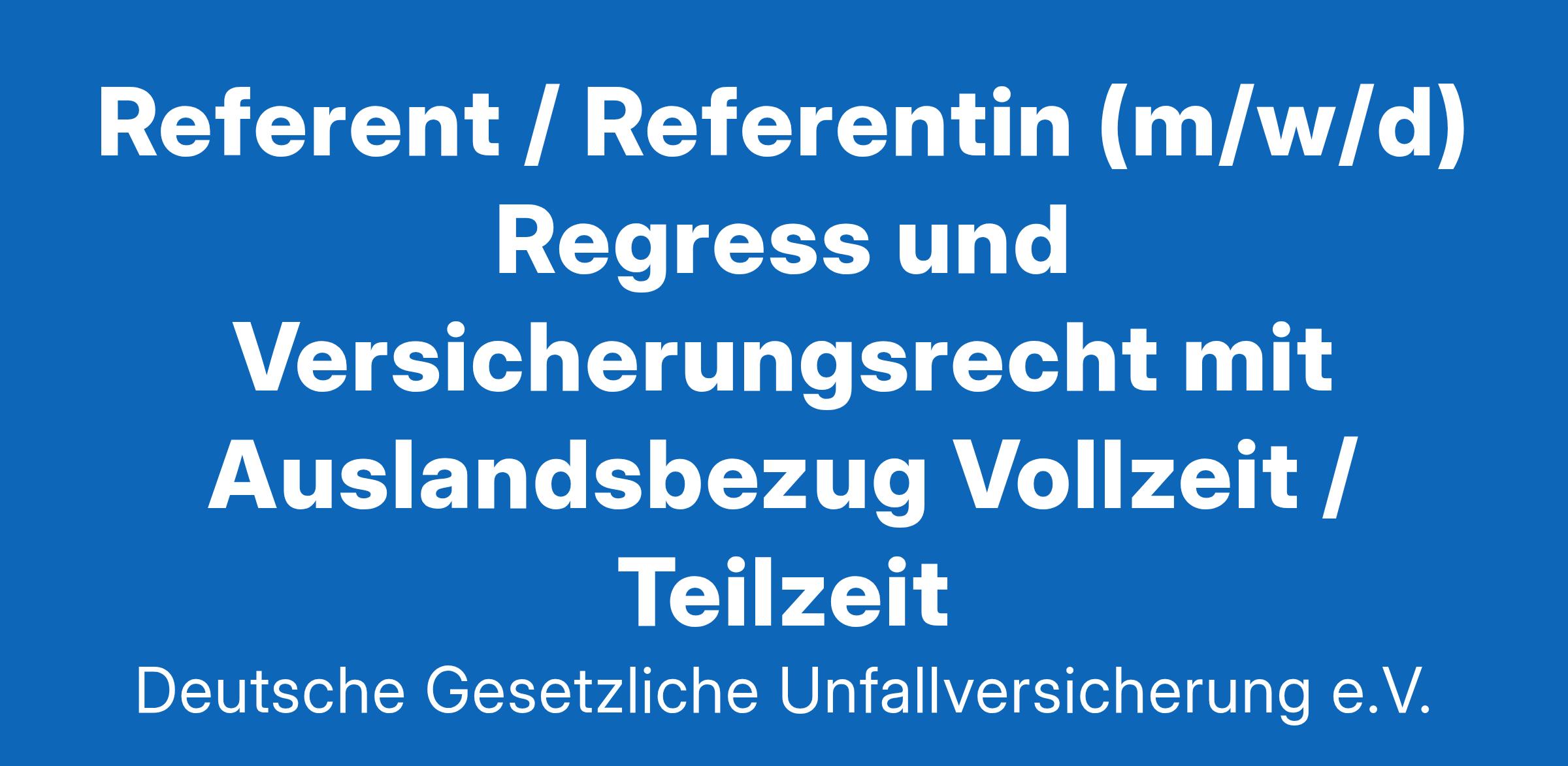 Kommen Sie in unser Team des Stabsbereichs Politik und helfen Sie mit, Arbeit noch sicherer und gesünder zu machen. Bewerben Sie sich jetzt als: Referent/Referentin (m/w/d) Regress und Versicherungsrecht mit Auslandsbezug Wir sind die Deutsche Gesetzliche Unfallversicherung e.V. (DGUV), der Spitzenverband der neun gewerblichen Berufsgenossenschaften und 24 Unfallkassen in Deutschland. Prävention, Rehabilitation und Entschädigung - das sind unsere zentralen Aufgaben. Wir kümmern uns um die Sicherheit der Menschen beim Arbeiten und Lernen. Ihr zukünftiges Team: Die wichtigste Aufgabe des Stabsbereichs Politik ist die Vertretung der Interessen der gesetzlichen Unfallversicherung gegenüber Regierung und Parlament sowie weiteren politischen Entscheidungsträgern. Grundlage hierfür ist die vertrauensvolle Zusammenarbeit mit den verschiedenen Ansprechpartnern der Unfallversicherung und ein gutes Gespür dafür, welche Argumente für die Politik zählen. Weitere Eckpfeiler einer erfolgreichen politischen Interessensvertretung sind die Fähigkeit, als ehrlicher und verlässlicher Gesprächspartner aufzutreten und jederzeit auch sachlichen Argumenten gegen das eigene Anliegen seriös zu begegnen. Ihre Aufgaben: Bearbeitung einzelner Rechtsfragen mit Schwerpunkt des für den Regress relevanten Sozial- und Zivilrechts, auch mit Auslandsbezug und des Fremdrentenrechts Recherche und Auswertung von Rechtsprechung sowie Aufbereitung von Informationen über Rechtssysteme in anderen Ländern zur trägerinternen und auch externen Veröffentlichung Zusammenarbeit im Bereich Regress mit den Unfallversicherungsträgern sowie mit der Kranken- und Rentenversicherung und anderen Stellen, insbesondere durch Betreuung des Arbeitskreises Regress der DGUV und der Teilnahme an fachspezifischen Veranstaltungen Unterstützung bei Rundschreiben und Stellungnahmen in den oben genannten Rechtsgebieten an die Unfallversicherungsträger und andere Stellen Unterstützung bei Aufgaben im Internationalen Sozialrecht und Europarecht Ihr Profil: abgeschlossenes wissenschaftliches Hochschulstudium (Master) der Rechtswissenschaften, alternativ erstes juristisches Staatsexamen oder gleichwertige Kenntnisse und Erfahrungen Gute Kenntnisse des für den Regress relevanten Sozial- und Zivilrechts sowie des Sozialrechts mit Auslandsbezug Interesse an internationalen Aufgabenstellungen Sehr gute schriftliche und mündliche Ausdrucksfähigkeit auch in englischer Sprache Sehr gute Kenntnisse der MS-Office-Anwendungen und des MS Outlook Bereitschaft zu mehrtägigen Dienstreisen Ihr Kontakt: Fachliche Fragen beantwortet Ihnen: Ann-Kathrin Schäfer | 030 13001 1605 Fragen zum Bewerbungsverfahren beantworten Ihnen unter Angabe der Kennziffer POL - 25 - 04:Franziska Möckel | 030 - 13001 - 1773 Susanne Neumann | 030 - 13001 - 1774 Stellendetails: Start ab sofort Bewerbungsfrist 22.02.2025 Standort Berlin Stellenumfang Vollzeit, Teilzeit möglich Gehalt bis EG 14 BG-AT Befristung Befristet 31.08.2025 (je nach Vorliegen der persönlichen und tariflichen Voraussetzungen) weitere Informationen finden Sie hier Die Arbeitsplätze der DGUV sind grundsätzlich auch für Teilzeitkräfte geeignet Wir unterstützen die Ziele der UN-Behindertenrechtskonvention und setzen uns besonders für die Belange von Menschen mit Beeinträchtigungen ein. Wir begrüßen daher ausdrücklich Bewerbungen von schwerbehinderten und gleichgestellt behinderten Menschen. Ihre Vorteile: Tätigkeit mit Sinn Einen abwechslungsreichen und interessanten Job rund um die Themen Sicherheit und Gesundheit bei der Arbeit, Rehabilitation und Soziale Sicherheit Transparente Bezahlung Ein sicheres Gehalt nach BG-AT + Sonderzahlung und Leistungsprämie Urlaub, Vereinbarkeit und Homeoffice Flexible Arbeitszeiten, individuelle Teilzeit-Regelungen, 30 Tage Urlaub/Jahr, bis zu 3 Tage/Woche mobiles Arbeiten je nach Stellenprofil Vielfalt und Inklusion Vielfalt hat zahlreiche Facetten. Dazu gehört die Inklusion von Menschen mit Behinderung Sicherheit und Gesundheit Ergonomische Arbeitsplatzausstattung, Sport- und Bewegungsangebote Lebenslanges Lernen Ein umfangreiches Fort- und Weiterbildungsprogramm An die Zukunft denken Abgesichert sein mit der Betrieblichen Altersvorsorge (VBL) Zertifizierte Arbeitgeberin Deutsche Gesetzliche Unfallversicherung e.V. (DGUV) Glinkastraße 40 10117 Berlin Impressum Nutzungsbedingungen Weitere Informationen und viele gute Gründe, bei uns zu arbeiten: www.dguv.de/karriere