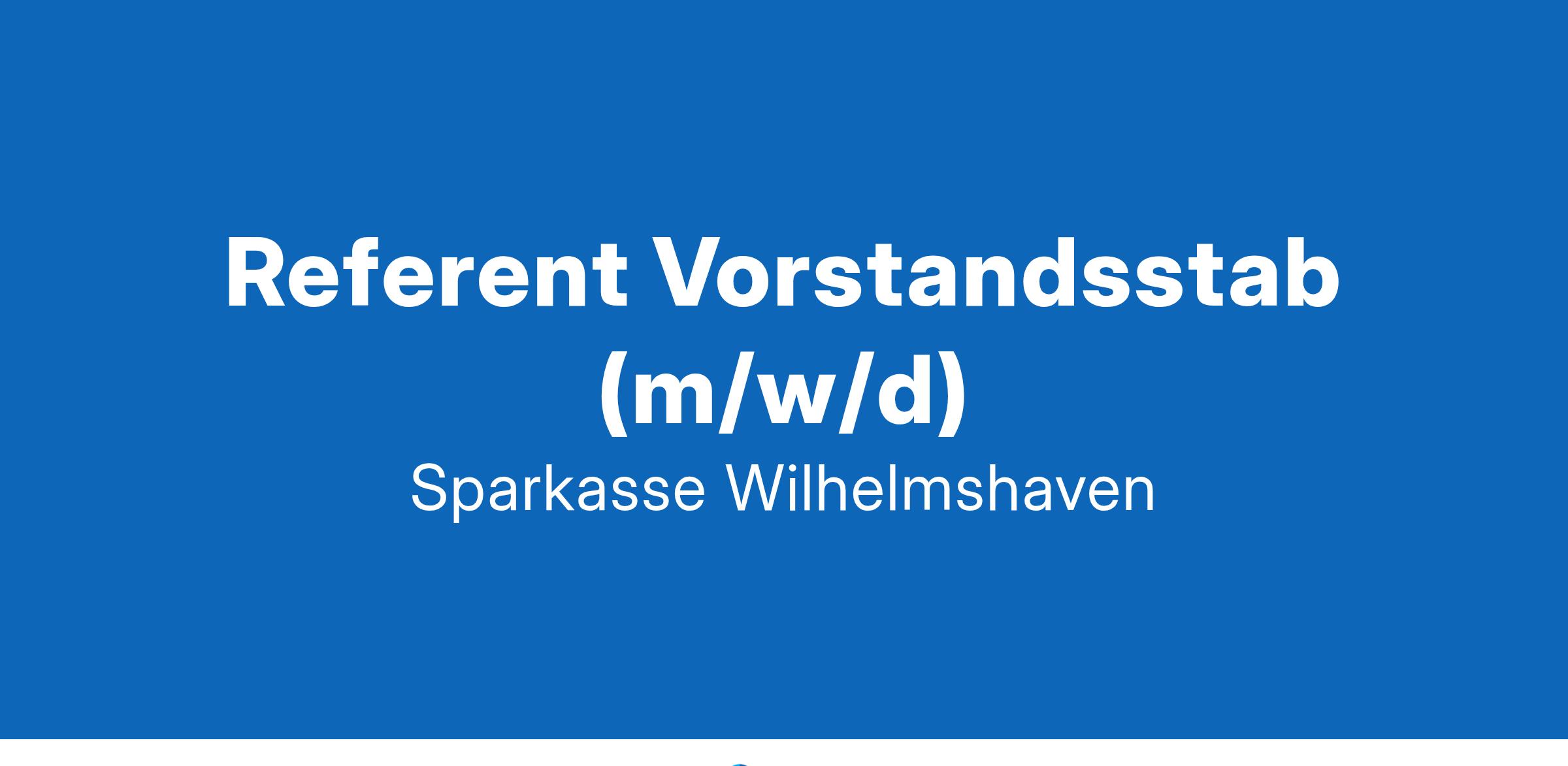 Wir suchen zum nächstmöglichen Zeitpunkt in Voll- oder Teilzeit einen Referent Vorstandsstab (m/w/d)Wir bieten IhnenVerantwortungsvolle und abwechslungsreiche Tätigkeiten inkl. Mitwirkung an Projektarbeiten und geschäftspolitischen Grundsatzfragen sowieMitverantwortung des zentralen Auslagerungsmanagements in Zusammenarbeit mit unserem Kooperationspartner inkl. Dokumentation und Berichterstattung an den VorstandDie Möglichkeit der Weiterentwicklung der DienstleistungsprozesseDie Mitverantwortung im Bereich Compliance/ Geldwäsche in Abhängigkeit von Ihren Vorkenntnissen und InteressenDas bringen Sie mitSie sind Sparkassen- bzw. Bankbetriebswirt/in, haben einen betriebswirtschaftlichen Studienabschluss oder verfügen über eine vergleichbare QualifikationSie bringen die Bereitschaft mit, sich in neue Aufgabenfelder einzuarbeitenAnalytisches Denken und Eigeninitiative gehört zu Ihren StärkenSie arbeiten gerne im Team, denken lösungsorientiert, sind kommunikativ und bringen sich selbstständig in die Arbeit einSie sind leistungsorientiert, arbeiten strukturiert und legen Wert auf eine zielorientierte UmsetzungSie sind sicher im Umgang mit MS-Office-Anwendungen und digitalen MedienGute Gründe Teil unseres Teams zu werdenEigener Arbeitslaptop und der Möglichkeit des mobilen Arbeitens32 Tagen Urlaub sowie Möglichkeit von Urlaubskauf Benefits wie Hansefit, Fahrradleasing, betrieblicher Altersvorsorge uvm.Vereinbarkeit von Beruf und FamilieZuverlässiger und sicherer ArbeitgeberStrukturierte Einarbeitung Chancenreiche, individuelle EntwicklungsmöglichkeitenUmfassendes Weiterbildungsangebot Attraktive Vergütung unter Berücksichtigung Ihrer Vorkenntnisse Interessiert? Bewerben Sie sich jetzt online bis zum 09. Februar 2024!Wir freuen uns auf Ihre vollständige Online-Bewerbung mit Gehaltsvorstellung und Ihrem frühestmöglichen Eintrittstermin. Bei Rückfragen steht Ihnen folgende Ansprechpartner zur Verfügung: Christian Schwarte, Bereich Personal, christian.schwarte@sparkasse-wilhelmshaven.de, 04421/401-313Kim Plorin, Bereich Personal, kim.plorin@sparkasse-wilhelmshaven.de, 04421/401-310Wir freuen uns auf Sie!