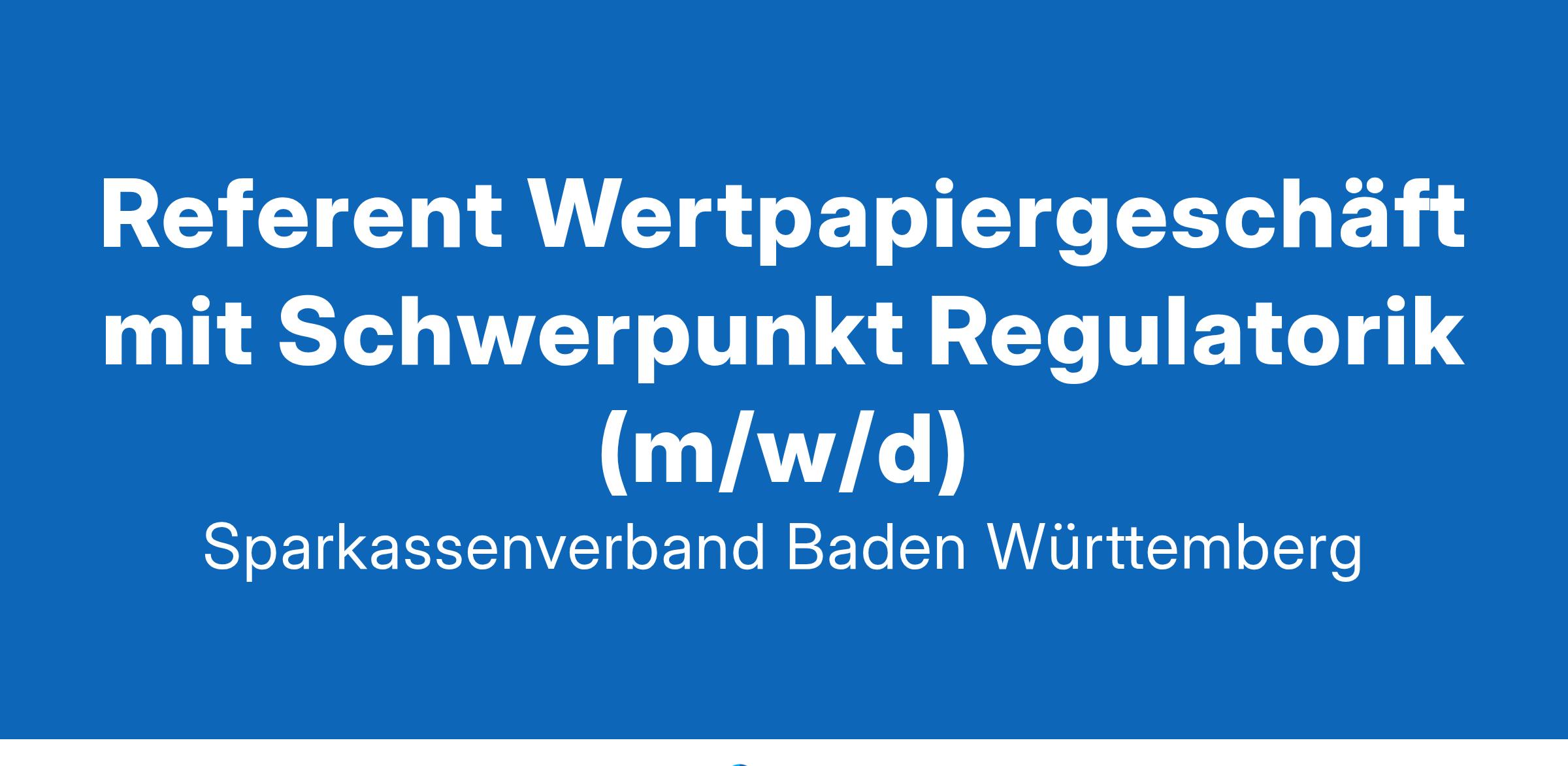 auch in Teilzeit (mind. 70%)Der Sparkassenverband Baden-Württemberg bündelt die Interessen der Sparkassen-Finanzgruppe, der größten kreditwirtschaftlichen Finanzgruppe in Baden-Württemberg.Rund 340 Mitarbeiterinnen und Mitarbeiter arbeiten dabei eng mit den 50 Sparkassen im Land sowie den großen Verbundunternehmen, der Landesbank Baden-Württemberg, der LBS Landesbausparkasse und der SV SparkassenVersicherung zusammen. Innerhalb dieser Gruppe hat der Verband wichtige Steuerungs- und Beratungsaufgaben. Er stärkt somit die Position der baden-württembergischen Sparkassen als Dienstleister für seine Kundinnen und Kunden und verbessert gemeinsam mit ihnen das Service- und Produktangebot.Mitten im Herzen von Stuttgart leben wir in der Geschäftsstelle des Sparkassenverbands nicht nur einen ausgeprägten Service- und Dienstleistungsgedanken, sondern wir bieten vor allem auch spannende und vielfältige Aufgaben in einem vertrauensvollen Umfeld und mit motivierten Teams.Darauf können Sie sich freuen ...einen unbefristeten, sicheren Arbeitsplatzeine attraktive Vergütung, Gehaltsdynamisierung gemäß Tarifvertrag für die öffentlichen Bankenbetriebliche Altersvorsorge (ZVK) und betriebliche Krankenzusatzversicherung (bKV)Zuschuss zum Deutschland-JobTicket und Gesundheitsmanagement (EGYM Wellpass)flexible Arbeitszeiten und mobiles Arbeitenzahlreiche Weiterbildungsmöglichkeiten an unserer SparkassenakademieMitarbeitervorteile bei VerbundpartnernDas erwartet Sie bei uns ...Zuständigkeit für Themen rund um das Wertpapiergeschäft mit Schwerpunkt RegulatorikBeratung von Sparkassen zu bereits bestehenden regulatorischen Anforderungen wie z.B. MiFID, MiFIR, MaCompMitwirkung bei der Implementierung neuer gesetzlicher AnforderungenBegleitung zentraler oder dezentraler Projekte zum Wertpapiergeschäft, insbesondere mit Schwerpunkt WertpapierabwicklungMitwirkung in Arbeitskreisen des DSGV und der dwpbankDurchführung von Veranstaltungen an der Akademie sowie Aufbau von Schulungen für Compliance und BeraterDas sollten Sie mitbringen ...wirtschaftswissenschaftliches oder betriebswirtschaftliches Studium oder vergleichbare Qualifikation (Sparkassenlaufbahn)Umfassende Kenntnisse und Erfahrungen im Bereich Wertpapiergeschäft und Regulatorik im Anlagegeschäft/ComplianceKenntnisse der IT-Systeme der Sparkassenhohe Motivation, auch in der Beratung der Sparkassen vor Ort, Teamfähigkeit, Kreativität sowie eine hohe Kommunikationsfähigkeithohe Eigenverantwortung, Flexibilität, ein sicheres Auftreten und ausgeprägtes Maß an Dienstleistungsorientierung setzen wir vorausAus Gründen der besseren Lesbarkeit wird auf die gleichzeitige Verwendung männlicher und weiblicher Sprachformen verzichtet. Sämtliche Personenbezeichnungen gelten gleichermaßen für alle Geschlechter (m/w/d).Sie sind interessiert an einem attraktiven Arbeitgeber im Herzen von Stuttgart?