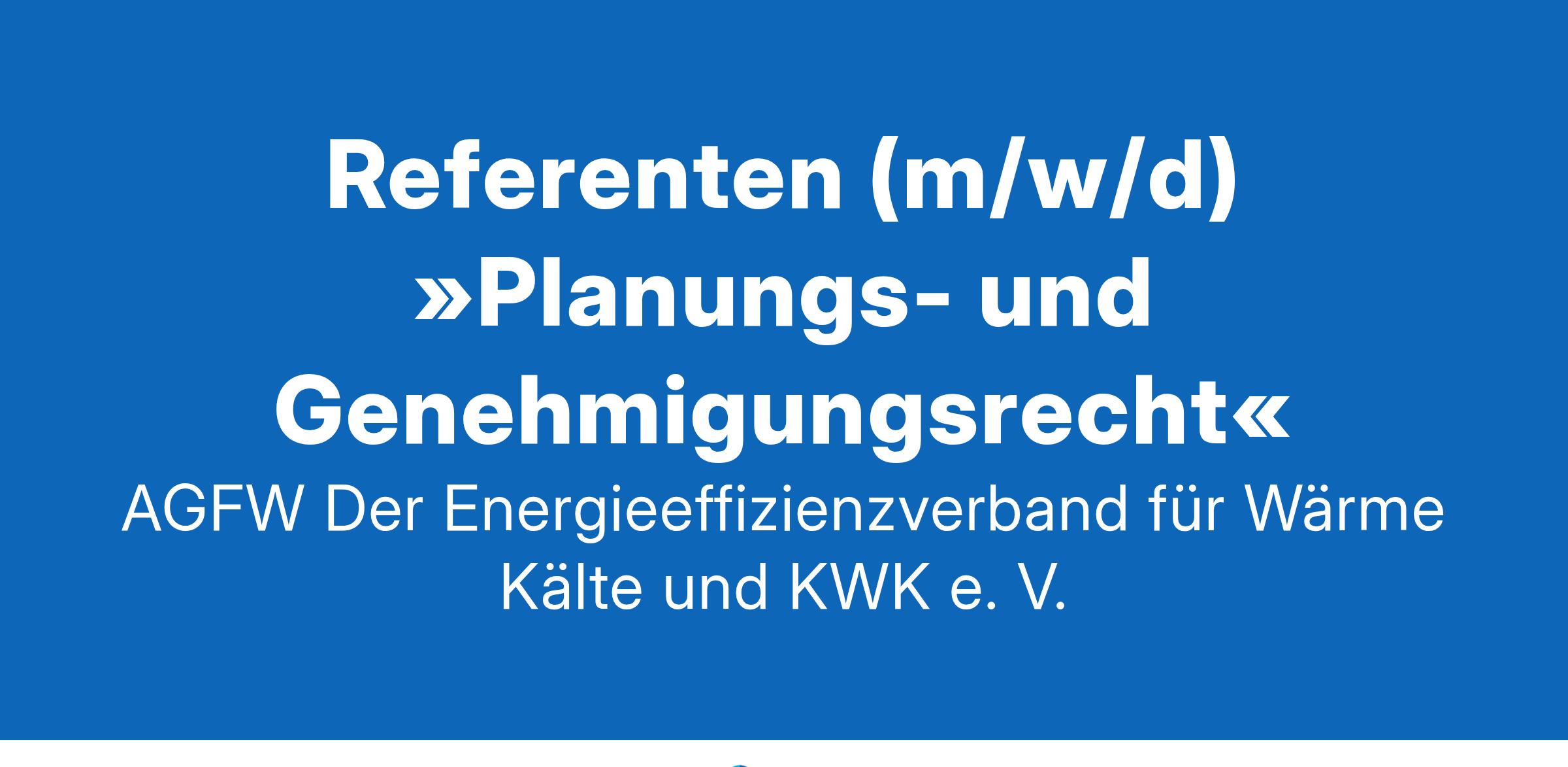Referenten (m/w/d) »Planungs- und Genehmigungsrecht«Ihre Aufgaben:Betreuung aller fernwärmerechtlicher Themen, insbesondere ihrer öffentlich-rechtlichen Bezüge (Baurecht, Planungsrecht, Immissionsschutzrecht, sonstiges Genehmigungsrecht)