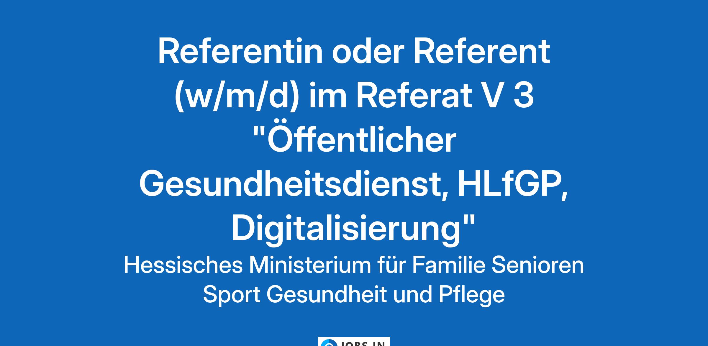 Über uns Im Hessischen Ministerium für Familie, Senioren, Sport, Gesundheit und Pflege (HMFG) werden die Lebensthemen unserer Gesellschaft behandelt. Verstärken Sie unser Team in der Abteilung V „Pflege und Öffentliche Gesundheit“ Ihre Aufgaben Zu Ihren Aufgaben gehören juristische Fragestellunge... Office Anwendungen;Flexibilität;Überzeugungskraft;Verhandlungsführung;Änderungen;Landesverwaltung;Kommunikation;Digitalisierung;Leistungsmotivation;Gesundheitsdienst;Entwurf;Gemeindeverwaltung Original Stellenanzeige auf StepStone.de – Jetzt Jobagent bei StepStone einrichten und Traumjob finden! https://bit.ly/2KOagYD Mehr Informationen zu Arbeitgebern, Gehaltsdaten und Karrieretipps finden Sie auf StepStone.de