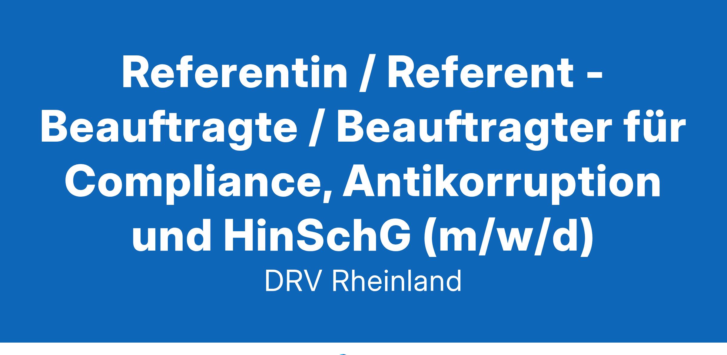 DRV Rheinland Referentin / Referent - Beauftragten/ Beauftragten für Compliance, Antikorruption und HinSchG (m/w/d) Düsseldorf Die Deutsche Rentenversicherung Rheinland ist einer der größten Träger der gesetzlichen Rentenversicherung in Deutschland mit über 3.600 Mitarbeiterinnen und Mitarbeitern in der Hauptverwaltung in Düsseldorf, den 12 regionalen Service-Zentren in den Regierungsbezirken Düsseldorf und Köln und 5 Rehabilitationskliniken. Im Referat Justitiariat und Regress ist zum nächstmöglichen Zeitpunkt eine Stelle in der Funktion einer Referentin/ eines Referenten- einer Beauftragten/ eines Beauftragten für Compliance, Antikorruption und HinSchG (m/w/d) in der Vergütungsgruppe EG 14 TV-TgDRV zu besetzen. DIESE AUFGABEN ERWARTEN SIE Entwicklung und Aufbau eines Compliance Bereiches (Compliance- Management-Systems) für die DRV Rheinland Beauftragte/ Beauftragter der Internen Meldestelle der DRV Rheinland (HinSchG) Wahrnehmung der Aufgaben einer/ eines Antikorruptionsbeauftragten Hausinterne und externe Schulungen zu rechtlichen Fachthemen, insbesondere in den Bereichen Compliance, HinSchG und Antikorruption Allgemeine rechtliche Fragestellungen, insbesondere im Zivil-,Zwangsvollstreckungs-, Straf-, Verwaltungs-, Arbeits- und privaten Baurecht Prozessführung in allen Gerichtszweigen mit Ausnahme der Sozialgerichtsbarkeit Erstellung von Rechtsgutachten und Mitwirkung bei der Gestaltung von Verträgen (Mit-) Betreuung von Referendarinnen und Referendaren, Studierenden und Schülerpraktikantinnen und Schülerpraktikanten sowie Mitarbeit und Verantwortung in internen und externen Projekten sowie u.a. Teilnahme an bundesweiten Justitiartagungen VORAUSGESETZT WIRD Voraussetzung für die mit der Wahrnehmung der Stelle verbundenen Funktionen ist die Absolvierung der ersten und zweiten juristischen Staatsprüfung. DAS ZEICHNET SIE DARÜBER HINAUS AUS eine mindestens zweijährige praktische Erfahrung in einer Compliance Funktion beispielsweise in einem Justitiariat/ einer Rechtsabteilung, der Internen Revision, einer Wirtschaftsprüfung oder im Consulting Verhandlungssicherheit und -geschick für Verhandlungen mit internen und externen Verhandlungspartnerinnen und Verhandlungspartnern gute IT-Kenntnisse analytisches Denkvermögen ausgeprägte kommunikative, integrative Fähigkeiten und verbindliches Auftreten gute Kenntnisse im Zivil-, Zwangsvollstreckungs- und Verwaltungsrecht hohe soziale Kompetenz und Teamfähigkeit hohes Maß an Flexibilität und Selbstständigkeit, verbunden mit der Bereitschaft, sich auf wechselnde Aufgaben und Anforderungen einzustellen, wirtschaftliches Denken Proaktivität, Ergebnisorientierung und Kreativität hohe Belastbarkeit WIR BIETEN IHNEN Unbefristete Vollzeitbeschäftigung nach dem Tarifvertrag der Tarifgemeinschaft der Deutschen Rentenversicherung (TV-TgDRV) Vergütung nach Entgeltgruppe 14 TV-TgDRV Zusätzliche Altersvorsorge (VBL) Home-Office-Möglichkeit und flexible Gestaltung der Arbeitszeit Wir möchten darauf hinweisen, dass Bewerbungen von Frauen ausdrücklich erwünscht sind. Die einschlägigen gesetzlichen Regelungen zur Förderung von Frauen finden Anwendung. Die Deutsche Rentenversicherung Rheinland nimmt die berufliche Integration nach dem SGB IX ernst. Bewerbungen von Schwerbehinderten und Gleichgestellten werden bei gleicher Eignung bevorzugt berücksichtigt. Eine Teilzeitbeschäftigung ist grundsätzlich möglich. KONTAKT Für weitere Informationen steht Ihnen die Leiterin des Referates Justitiariat und Regress, Frau Dr. Nina Wehinger (0211 937-3553), gerne zur Verfügung. Wir freuen uns auf Ihre Bewerbung bis zum 14.02.2025. Bitte bewerben Sie sich unter folgendem Link: Bewerbung