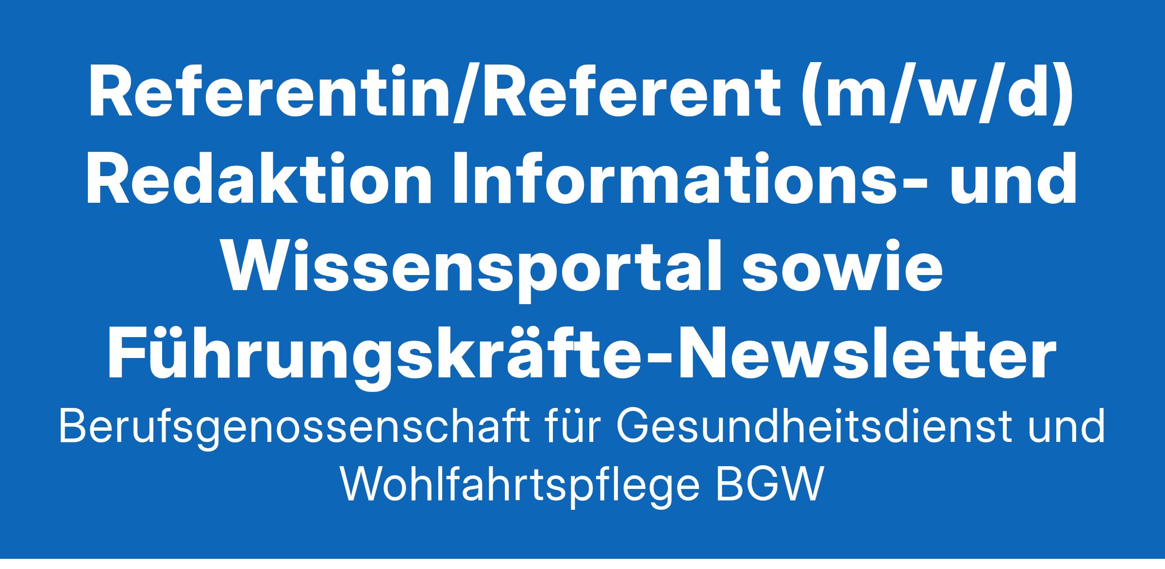 Referentin/Referent (m/w/d) Redaktion Informations- und Wissensportal sowie Führungskräfte-Newsletter