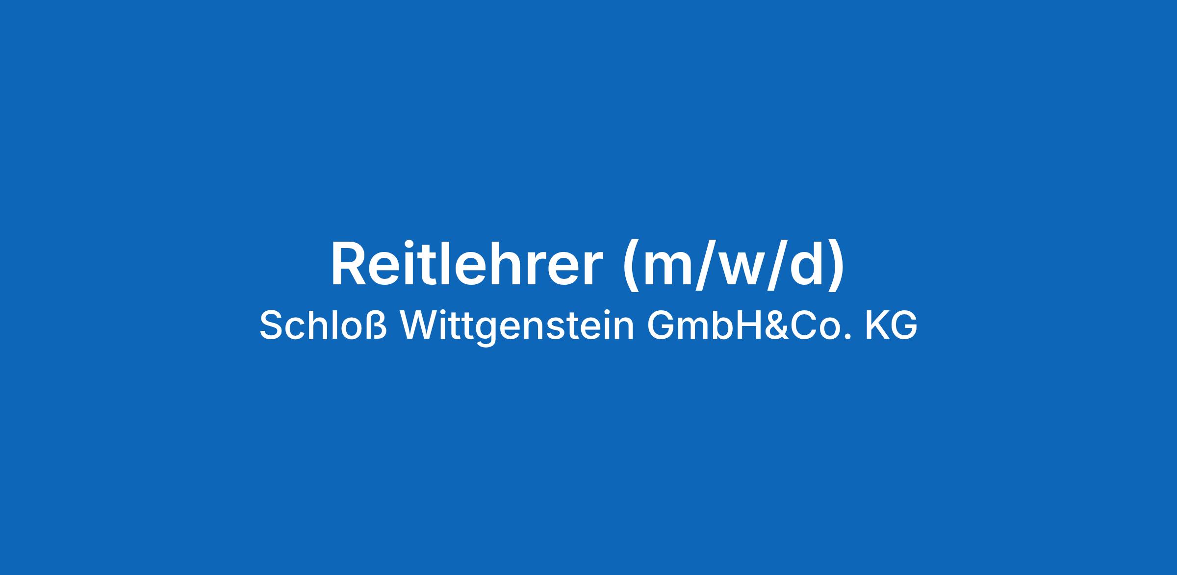Schloß Wittgenstein GmbH&Co. KG in Bad Laasphe sucht einen begeisterten Reitlehrer (m/w/d) für unser familiengeführtes Internat, das sowohl eine Realschule als auch ein Gymnasium beherbergt. Bei uns steht nicht nur die schulische Bildung im Vordergrund, sondern auch die Leidenschaft für den Reitsport. Als Teil unseres engagierten Teams wirst du die Möglichkeit haben, junge Talente zu fördern und ihnen den Spaß am Reiten näherzubringen. Unsere idyllische Lage in der Nähe von Wald und Wiesen bietet den perfekten Rahmen für unvergessliche Reitstunden. Wenn du Freude am Umgang mit Kindern und Pferden hast und gleichzeitig dein Wissen und deine Fähigkeiten im Reitsport weitergeben möchtest, dann bist du bei uns genau richtig. Werde Teil unserer Schulgemeinschaft und gestalte den Alltag unserer Schüler aktiv mit! Wir freuen uns darauf, dich kennenzulernen und gemeinsam mit dir die Begeisterung für den Reitsport zu teilen.