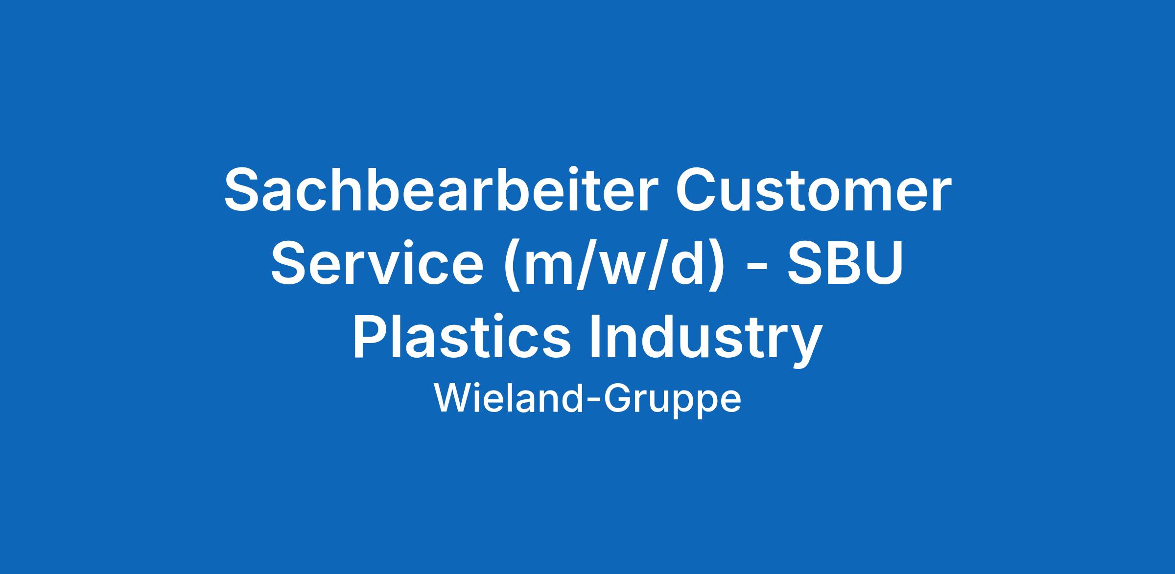 Sachbearbeiter Customer Service (m/w/d) - SBU Plastics Industry