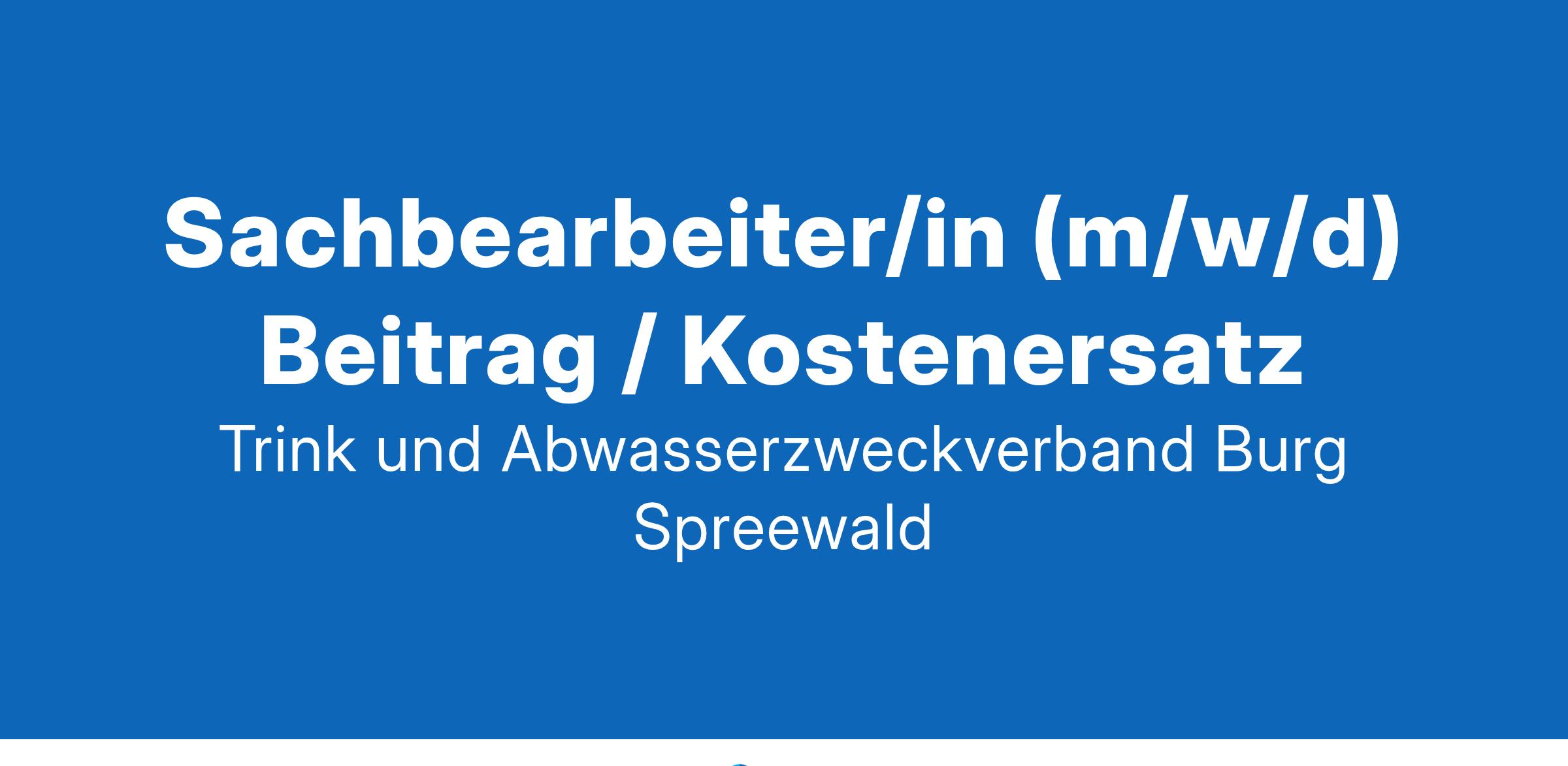 Sachbearbeiter/in (m/w/d) Beitrag / Kostenersatz Der Trink- und Abwasserzweckverband Burg (Spreewald) sucht zum nächstmöglichen Zeitpunkt für eine unbefristete Teilzeitstelle (20 h/Woche): eine/n Sachbearbeiter/in (m/w/d) Beitrag/Kostenersatz Die Vergütung erfolgt nach TVöD. Nähere Informationen unter: www.taz-burg-spreewald.de/stellenangebote/