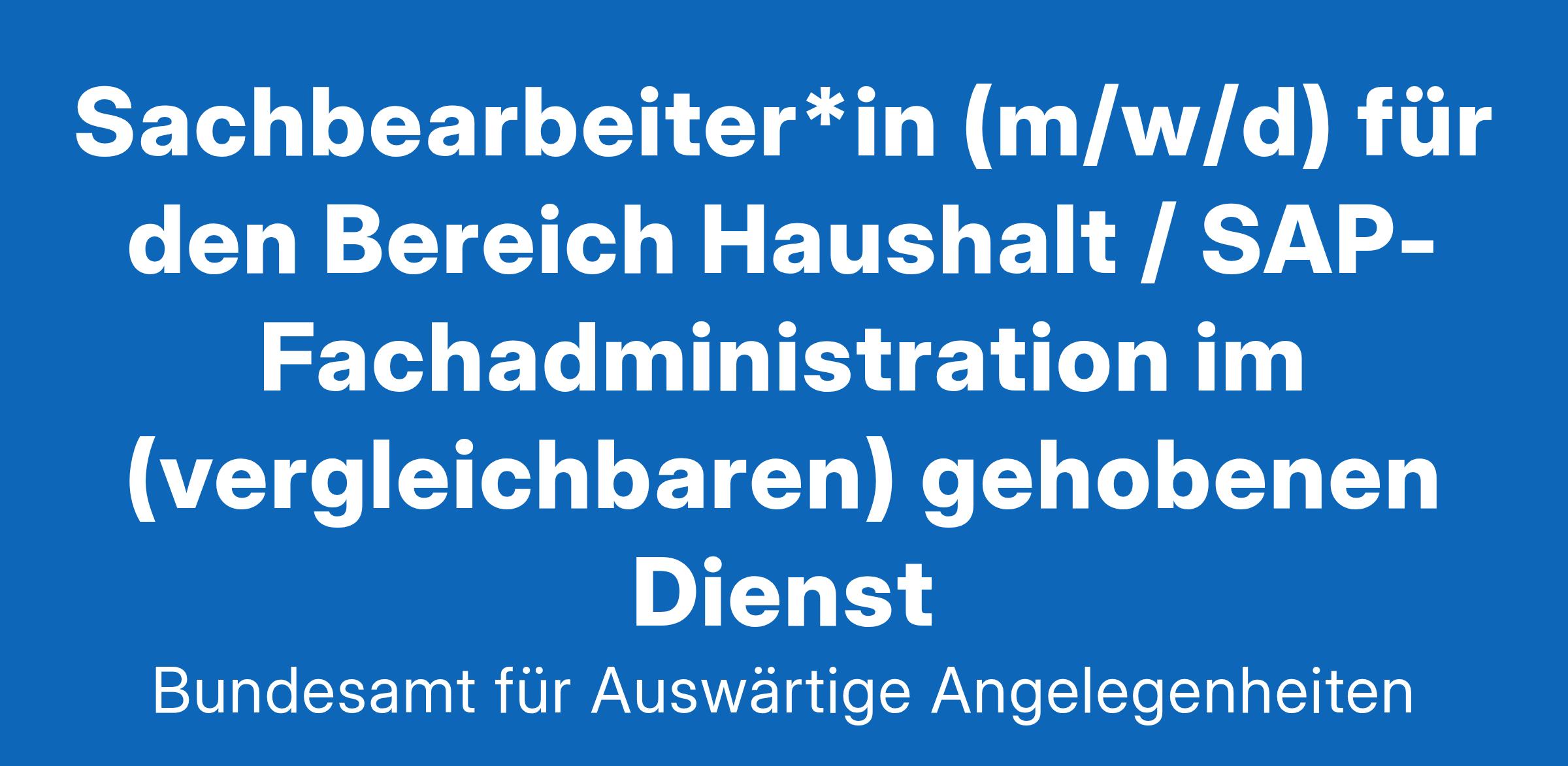 Eine*n Sachbearbeiter*in (m/w/d) für den Bereich Haushalt / SAP‑Fachadministration im (vergleichbaren) gehobenen Dienst
