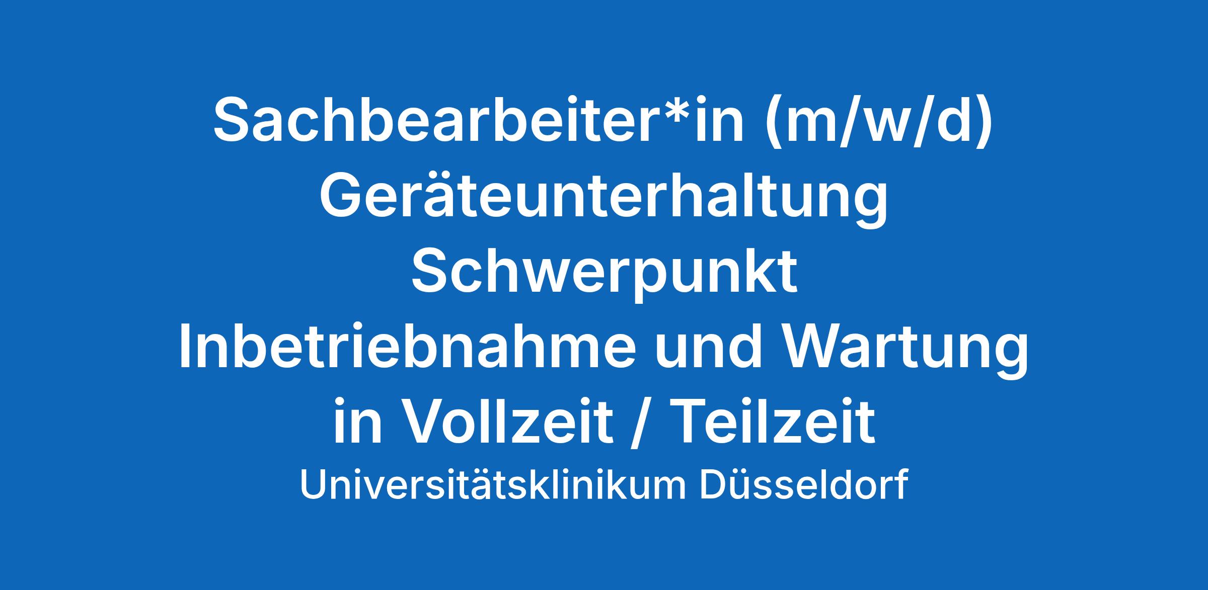 Sachbearbeiter*in (m/w/d) Geräteunterhaltung Schwerpunkt Inbetriebnahme und Wartung