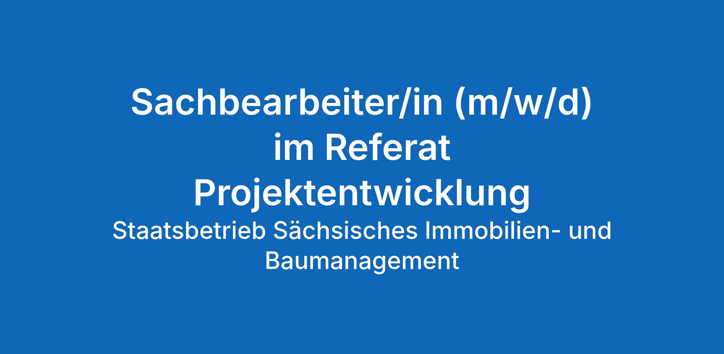 Sachbearbeiter/in (m/w/d) im Referat Projektentwicklung unbefristet in Vollzeit im Staatsbetrieb Sächsisches Immobilien- und Baumanagement (SIB), Zentrale