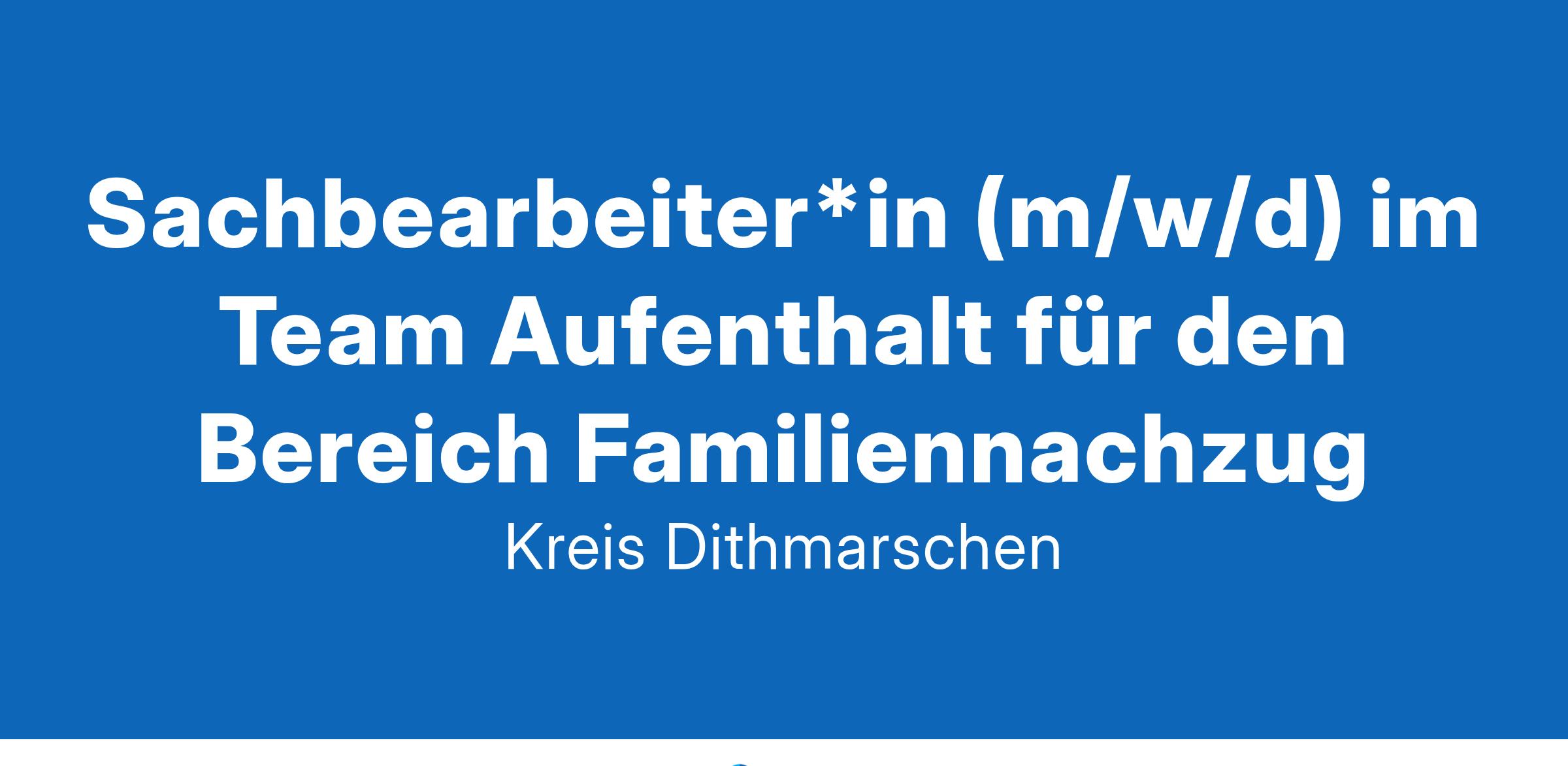 Sachbearbeiter*in (m/w/d) im Team Aufenthalt für den Bereich FamiliennachzugBeim Kreis Dithmarschen ist im Fachdienst Ordnung, Zuwanderung, Veterinärwesen und Lebensmittelüberprüfung im Sachgebiet Ausländer- und Staatsangehörigkeitsbehörde zum nächstmöglichen Zeitpunkt eine Stelle alsSachbearbeiter*in (m/w/d)