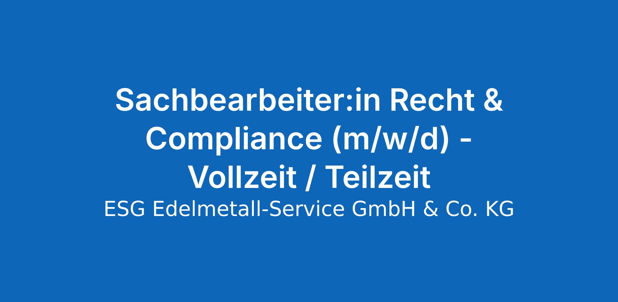 Sachbearbeiter:in Recht & Compliance (m/w/d)