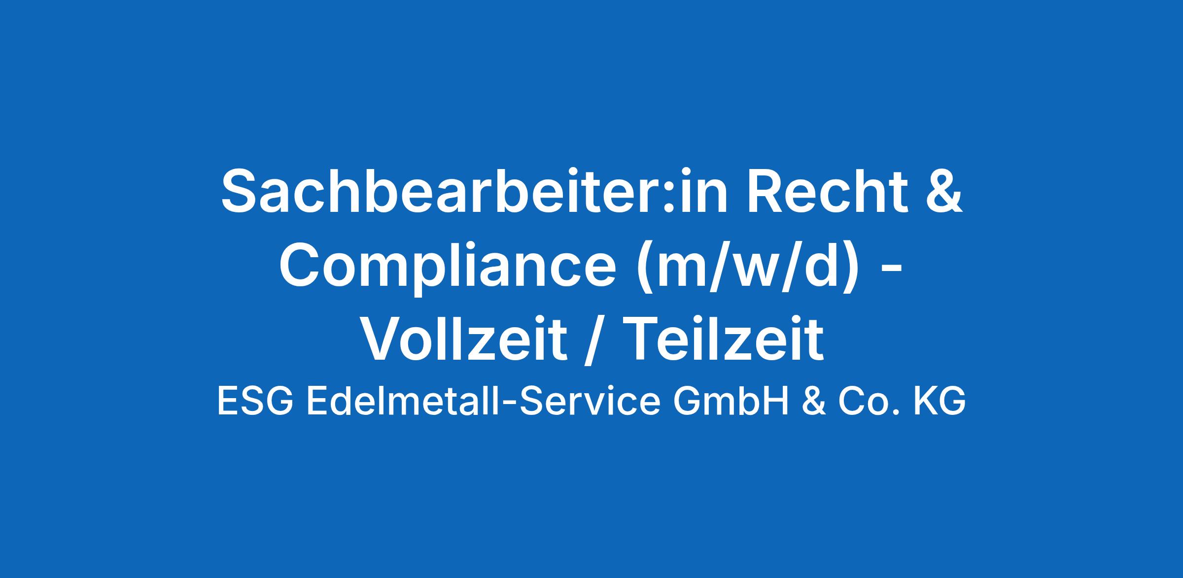 Sachbearbeiter:in Recht & Compliance (m/w/d)