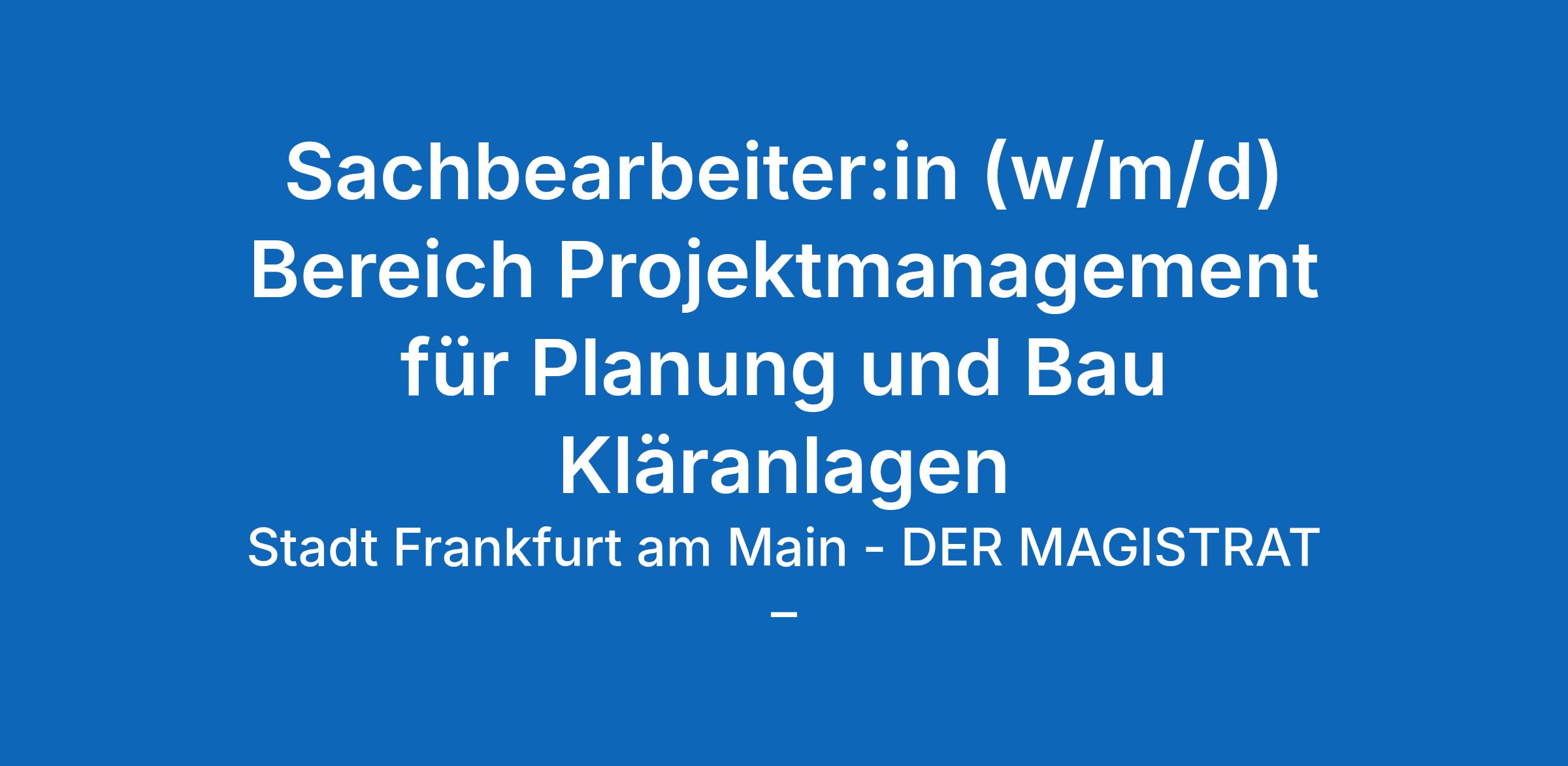 Große Veränderungen schaffen wir nur gemeinsam. Darum suchen wir Sie als Sachbearbeiter:in (w/m/d) Bereich Projektmanagement für Planung und Bau Kläranlagen für unser Stadt-Up Frankfurt!
