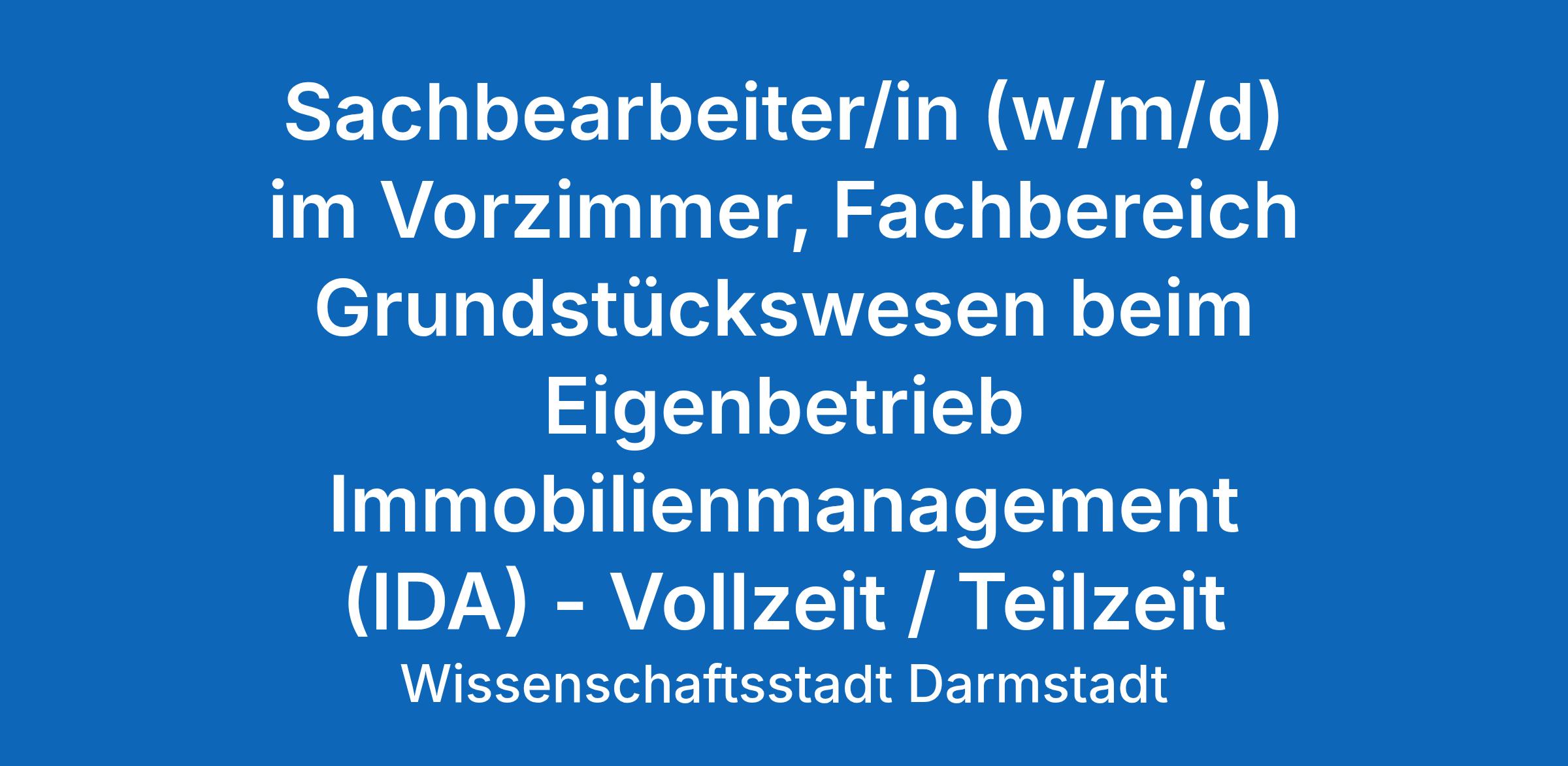 Sachbearbeiter/in (w/m/d) im Vorzimmer, Fachbereich Grundstückswesen beim Eigenbetrieb Immobilienmanagement (IDA)