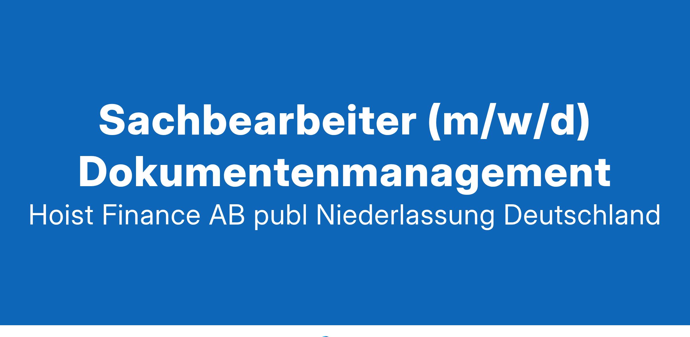 Hoist Finance ist ein führendes und europaweit tätiges Finanzdienstleistungsunternehmen mit Schwerpunkt auf den Gebieten Ankauf und Bearbeitung von Konsument:innenkrediten und Immobilienfinanzierungen. In Deutschland ist Hoist Finance seit 1997 aktiv und beschäftigt heute mehr als 200 Mitarbeiter:innen am Standort Duisburg. Wir legen besonderen Wert auf Marktverständnis, Kund:innenbindung und ein attraktives Arbeitsumfeld. Sachbearbeiter (m/w/d) Dokumentenmanagement Deine Hauptaufgaben: