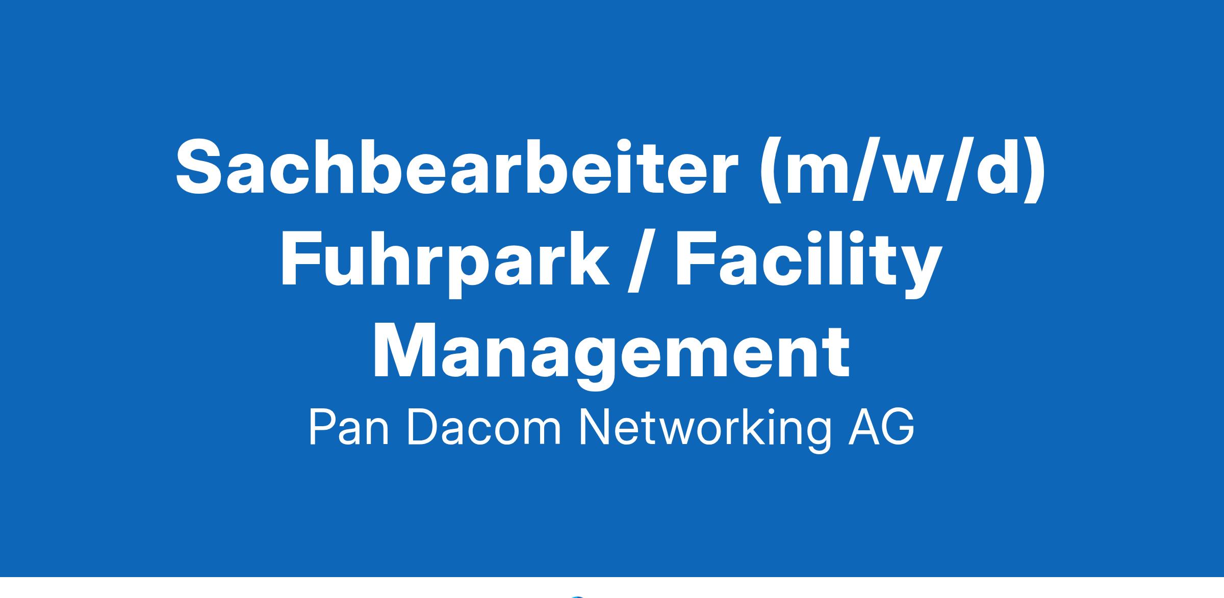 Sachbearbeiter (m/w/d) Fuhrpark / Facility ManagementDreieich | VollzeitAls international agierendes IT-Systemhaus und technologisch führender Hersteller mit eigener Hard- und Softwareentwicklung in Deutschland verfügt die Pan Dacom Gruppe über ein langjähriges IT-Know-how, um komplexe Netzwerke zu planen und zu realisieren. Hervorragender Service, technologische Innovationen, langfristige Partnerschaft mit unseren Kunden und Mitarbeitern sind für unser Unternehmen von strategischer Bedeutung.Wir suchen dich! Werde ein Teil unseres Erfolgsteams!Deine Aufgaben:Du bist für die vollumfängliche Verwaltung des Fahrzeugbestandes zuständig, einschließlich Anschaffung, Verkauf und Leasing von Fahrzeugen sowie das Vertragsmanagement