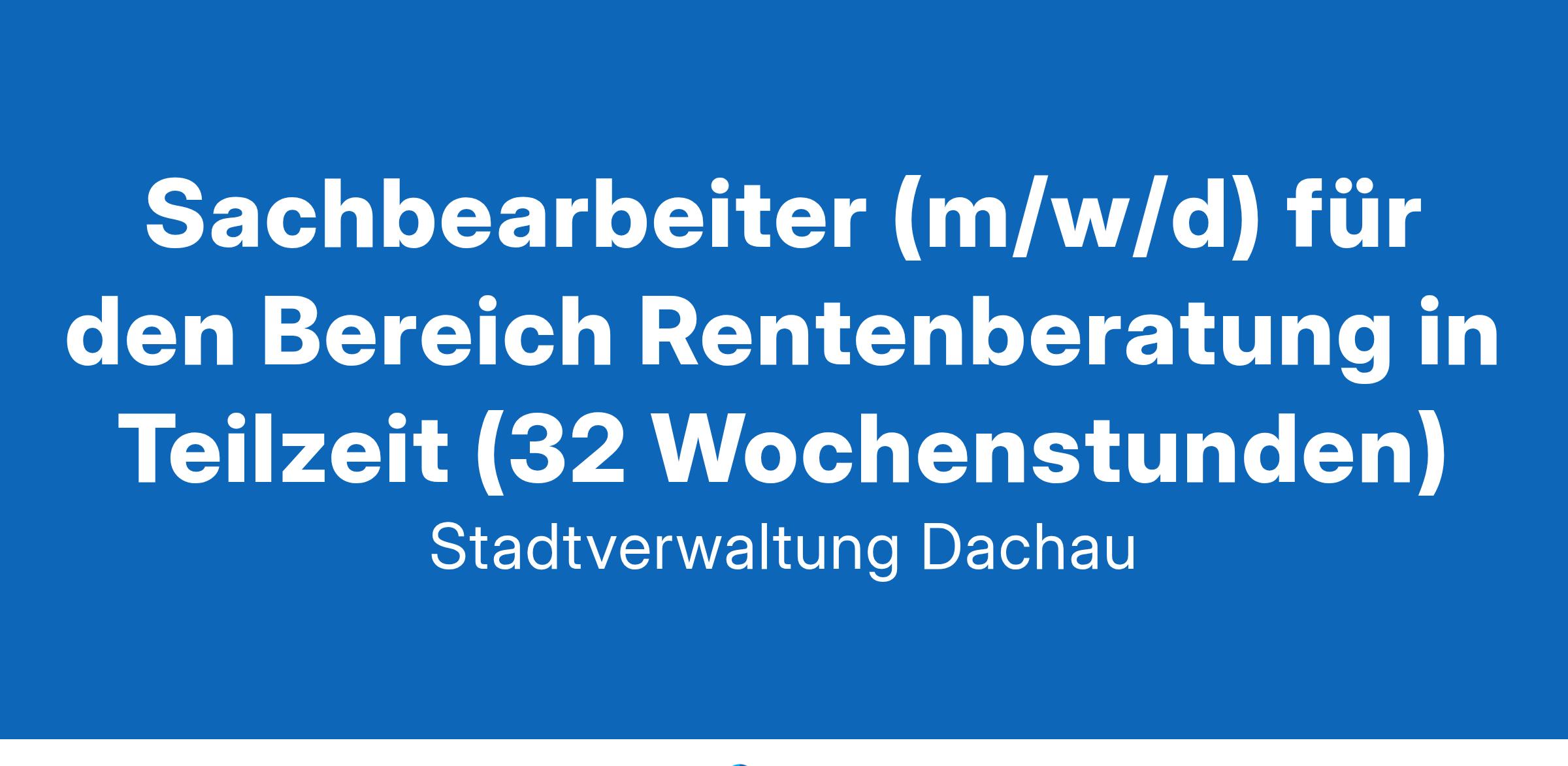 in Teilzeit (32 Wochenstunden) im Hauptamt, Abteilung Bürgerbüro zu besetzen. Der Verdienst richtet sich nach Entgeltgruppe 9a TvöD unter Berücksichtigung Ihrer individuellen Berufserfahrung. Bewerbungsfrist: 01.02.2025 Weitergehende Informationen zu dieser ausgeschriebenen Stelle, den Zusatzleistungen der Stadt Dachau sowie zum Datenschutz im Bewerbungsverfahren finden Sie im Internet unter www.dachau.de/karriere. Große Kreisstadt