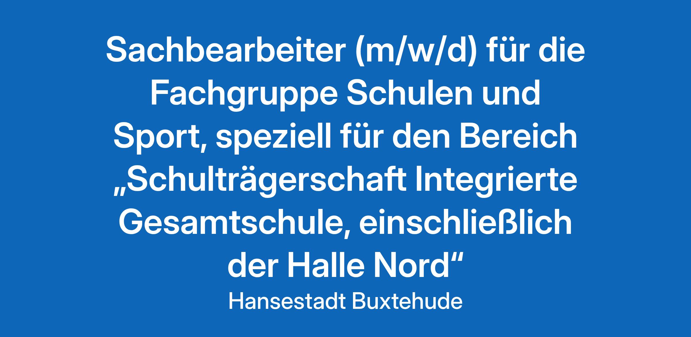 Sachbearbeiter (m/w/d) für die Fachgruppe Schulen und Sport, speziell für den Bereich „Schulträgerschaft Integrierte Gesamtschule, einschließlich der Halle Nord“