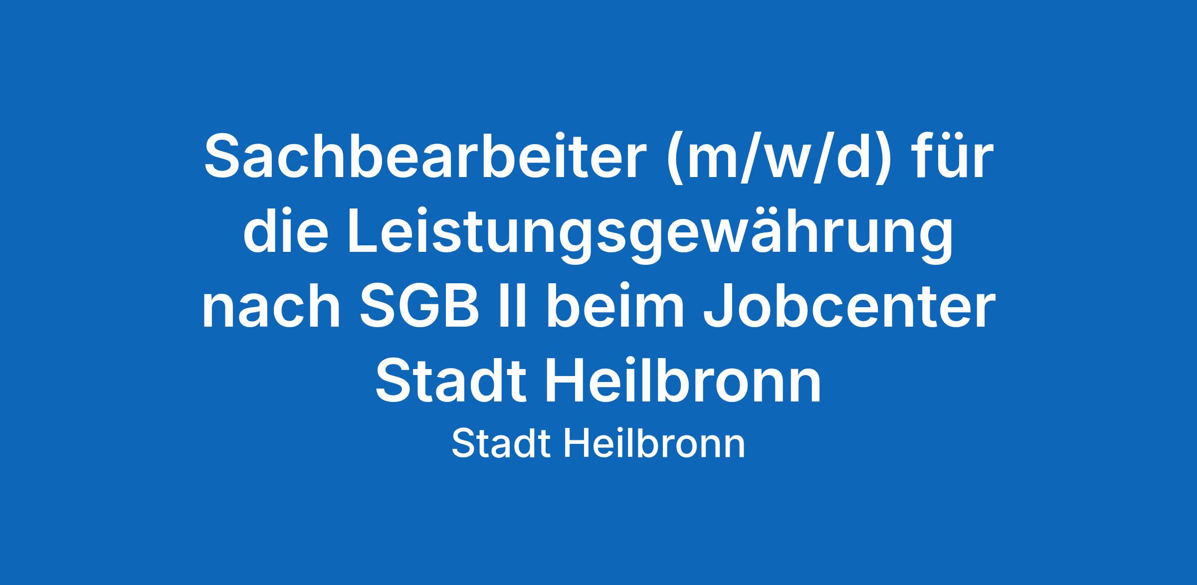 Sachbearbeiter (m/w/d) für die Leistungsgewährung nach SGB II beim Jobcenter Stadt Heilbronn