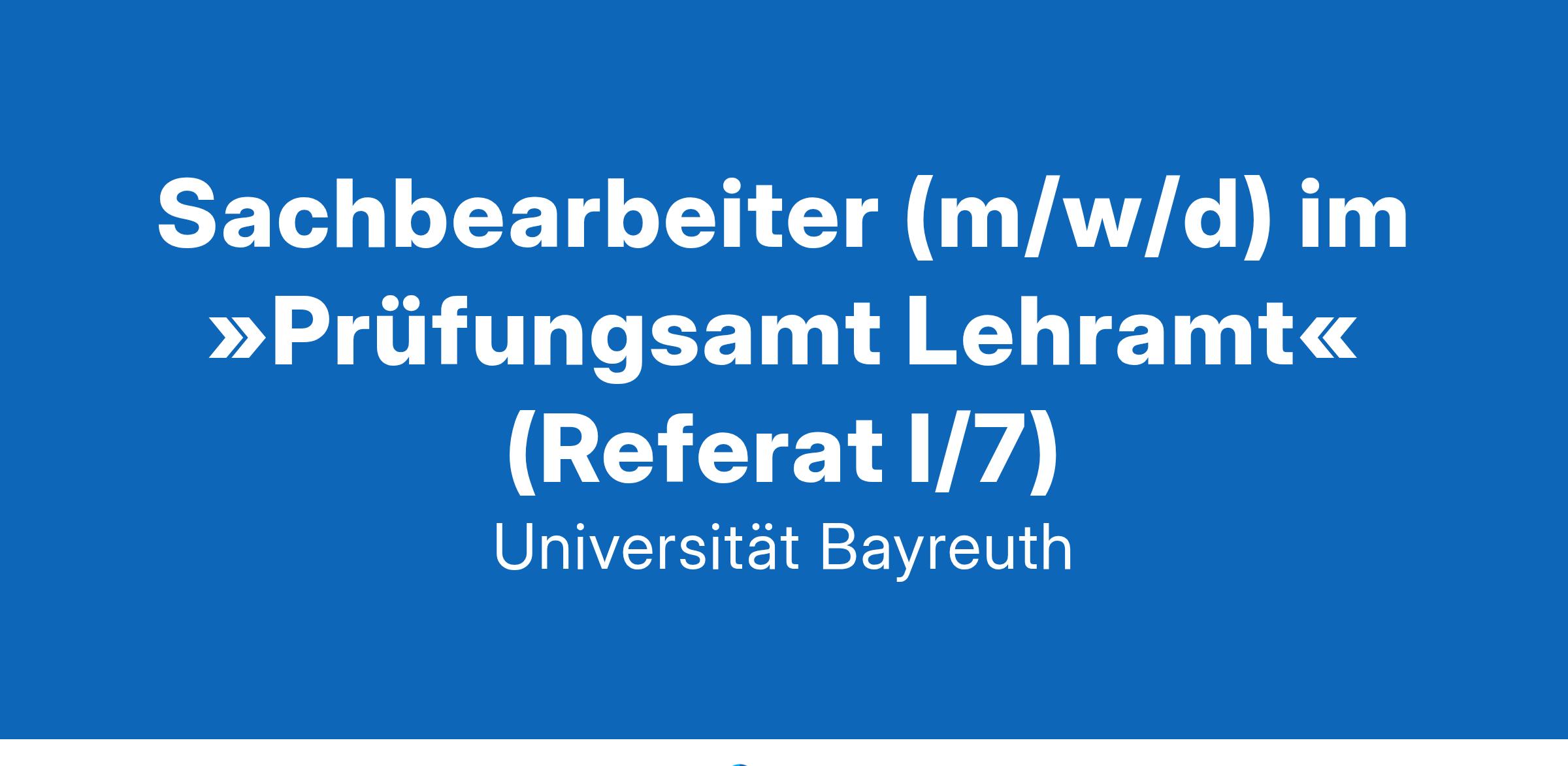 Wir haben Ihr Interesse geweckt? Dann bewerben Sie sich online bis zum 17.02.2025 unter Angabe des Kennworts „ Abteilung I - Sachbearbeiter Prüfungsamt I/7 “ über unser Bewerbungsportal Uni Bayreuth . Die Unterlagen werden nach Besetzung der Stelle gemäß den Anforderungen des Datenschutzes gelöscht.