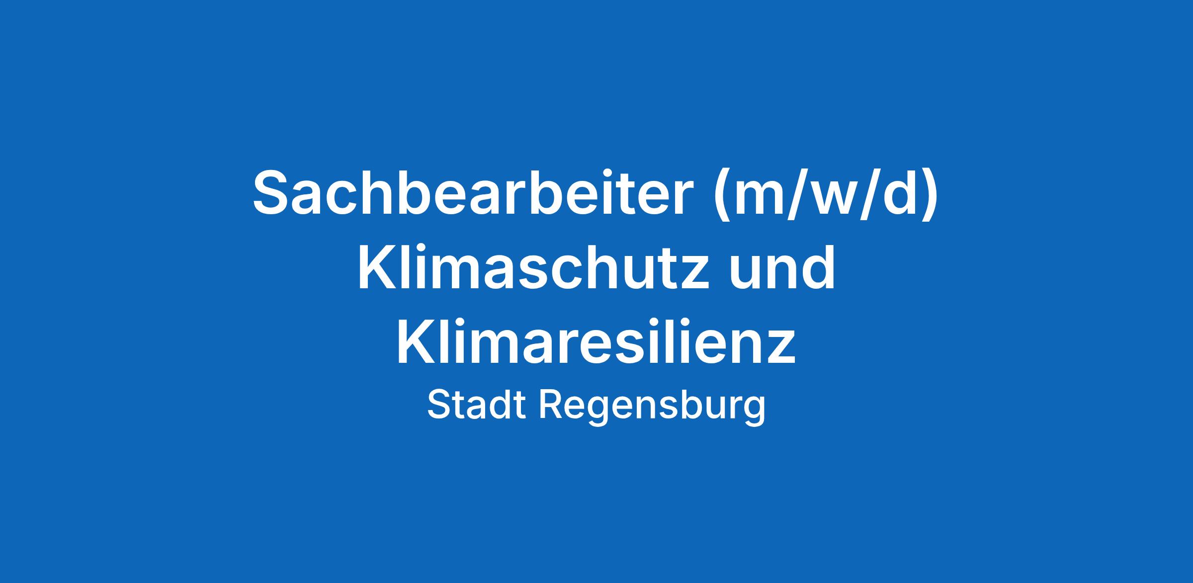 Gemeinsam mit der Stadt Regensburg die Zukunft gestalten! Wir suchen zum nächstmöglichen Zeitpunkt eine/-n Sachbearbeiter/-in (m/w/d) für die Stabsstelle Klimaschutz und Klimaresilienz im Direktorium 3.