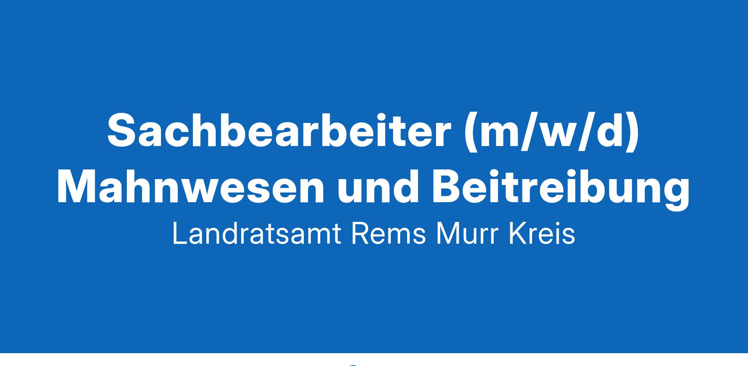 Für den Fachbereich Kasse und Mahnwesen in Waiblingen suchen wir Sie zum frühestmöglichen Zeitpunkt als Sachbearbeiter (m/w/d) Mahnwesen und Beitreibung unbefristet und befristet | bis 100 % | bis EG 8 TVöD-VKA Entscheiden auch Sie sich für unser modernes Landratsamt als Arbeitgeber. Gemeinsam engagieren wir uns für die Menschen, die hier leben. Wir arbeiten daran, unseren Landkreis noch lebenswerter zu machen. Und wir sind offen für Veränderungen und neue Themen. Bei uns können Sie an interessanten Projekten mitwirken. Prozesse mitgestalten. Individuell mitwachsen. Freuen Sie sich auf einen Arbeitsplatz mit idealen Bedingungen, die mehr als amtlich sind!MEHR BEWIRKEN KÖNNEN: mit der Durchführung von Vollstreckungsmaßnahmen (Pfändungen, Gerichtsvollzieher, etc.) mit der Durchführung von Forderungsanmeldungen im Insolvenzverfahren durch die schriftliche und mündliche Korrespondenz mit Bürgerinnen und Bürgern sowie Behörden durch die sorgfältige Aktenführung MEHR MÖGLICH MACHEN: mit Ihrer abgeschlossenen Ausbildung zum Verwaltungswirt (m/w/d), zum Verwaltungsfachangestellten (m/w/d) bzw. einer vergleichbaren rechtlich orientierten oder kaufmännischen Ausbildung mit Ihrer Berufserfahrung im Aufgabengebiet (wünschenswert) mit Ihren guten Kenntnissen in der Handhabung von MS-Standard-Software mit Ihren guten Kenntnissen mit ENAIO (wünschenswert) mit Ihrem guten schriftlichen und mündlichen Ausdrucksvermögen mit Ihrer selbständigen und strukturierten Arbeitsweise mit Ihrem hohen Maß an Organisationsfähigkeit mit Ihrem hohen Maß an Verantwortungsbewusstsein, Zuverlässigkeit und Ihrer hohen Leistungsbereitschaft mit Ihrer ausgeprägten Teamfähigkeit und Kundenorientierung Diese Position ist in Teilzeit im Fachbereich Kasse und Mahnwesen im Amt für Finanzen in Waiblingen zu besetzen. Freuen Sie sich auf eine Anstellung im Beschäftigtenverhältnis bei Vorliegen der tariflichen und persönlichen Voraussetzungen mit einer Vergütung bis Entgeltgruppe 8 des Tarifvertrages für den öffentlichen Dienst (TVöD-VKA). Die Stellen sind befristet mit 75 % als Elternzeitvertretung bis voraussichtlich 31. März 2026 zu besetzen sowie weitere 80 % ab 01.07.2025 unbefristet. Der Entgeltrahmen bei Beschäftigten liegt zwischen 42.150 und 51.320 Euro brutto jährlich (Vollzeit). Wir setzen uns für die Chancengleichheit im Beruf ein und ermuntern Menschen jeglicher Herkunft, mit anerkannter Behinderung sowie jeden Geschlechts, sich zu bewerben.MEHR ALS AMTLICHE VORTEILE: vielfältige und abwechslungsreiche Tätigkeiten moderne Arbeitsstrukturen Betreuungsangebote für Kinder unter drei Jahren E-Learning-Plattform für alle Mitarbeitende gute ÖPNV-Anbindung an allen Standorten MEHR FRAGEN BEANTWORTET IHNEN GERNE:Herr Alexander Schelling