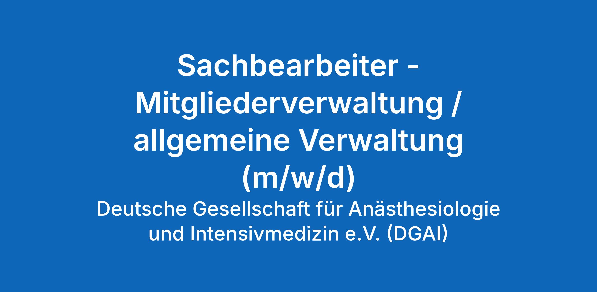 Bitte senden Sie uns Ihre aussagekräftigen Bewerbungsunterlagen unter Angabe Ihrer Gehaltsvorstellung per E-Mail an: BewerbungDGAI2025@t-online.de