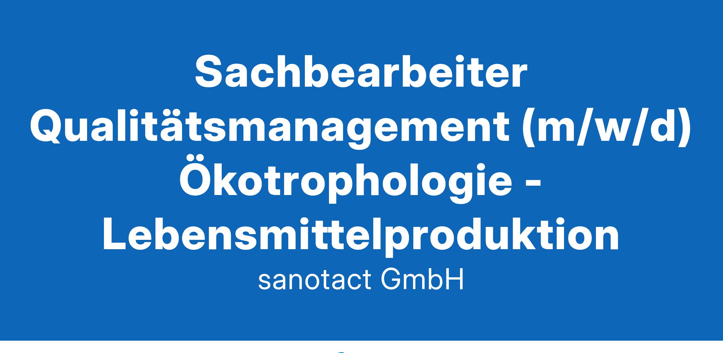 Sachbearbeiter Qualitätsmanagement (m/w/d) Ökotrophologie - Lebensmittelproduktion