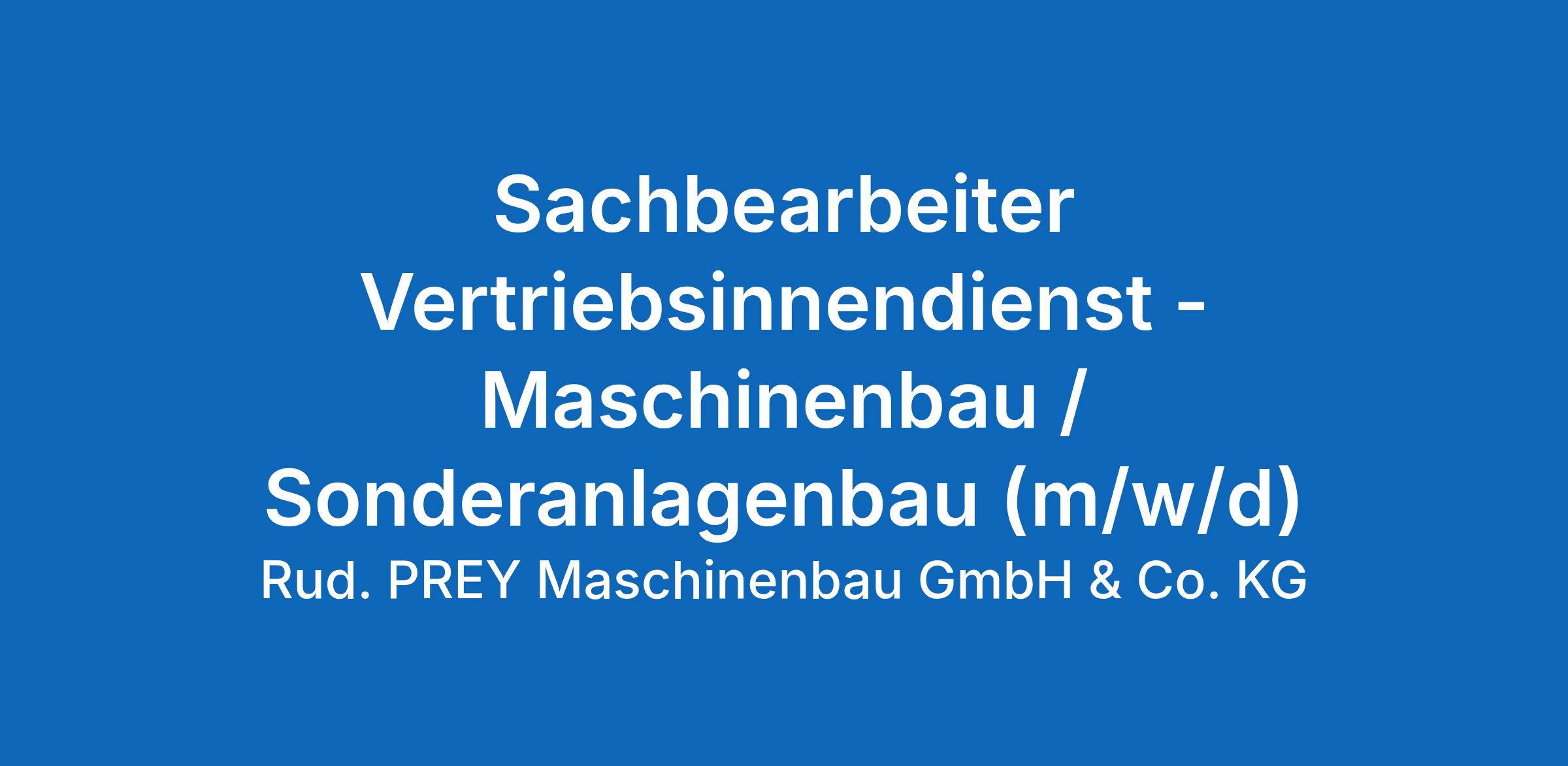 Sachbearbeiter Vertriebsinnendienst - Maschinenbau / Sonderanlagenbau (m/w/d)