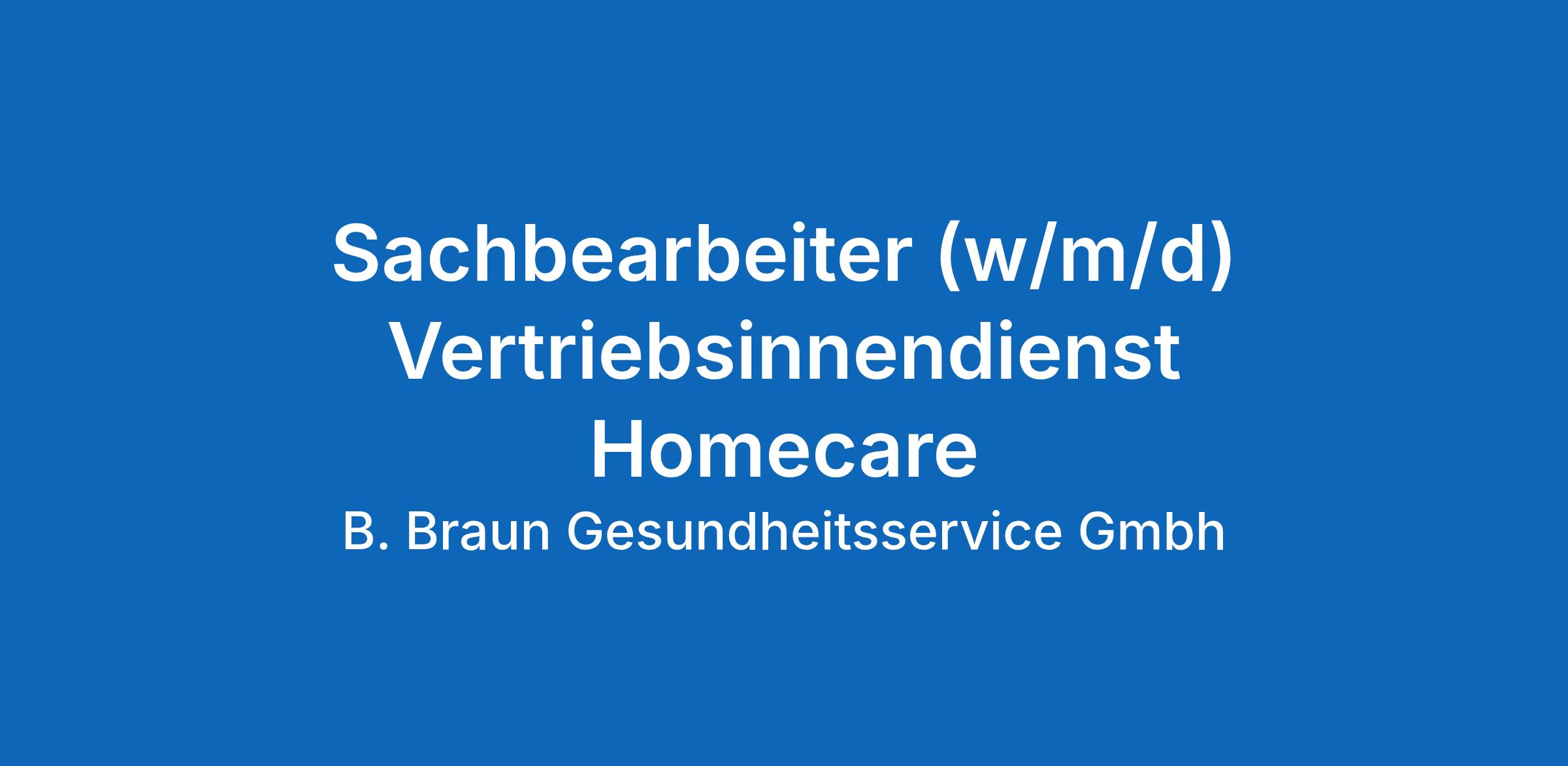 Sachbearbeiter (w/m/d) Vertriebsinnendienst Homecare