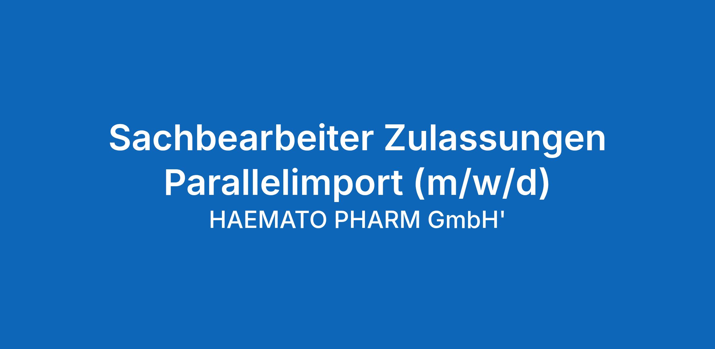 Sachbearbeiter Zulassungen Parallelimport (m/w/d)