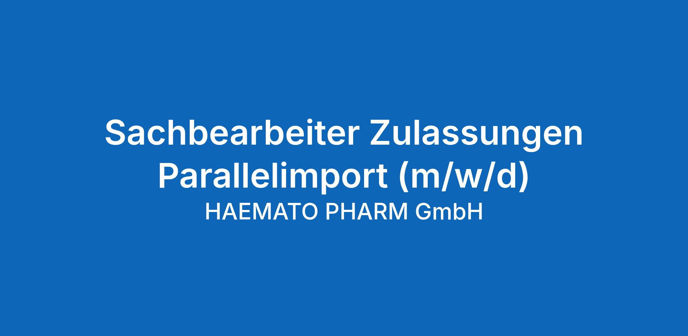 Sachbearbeiter Zulassungen Parallelimport (m/w/d)