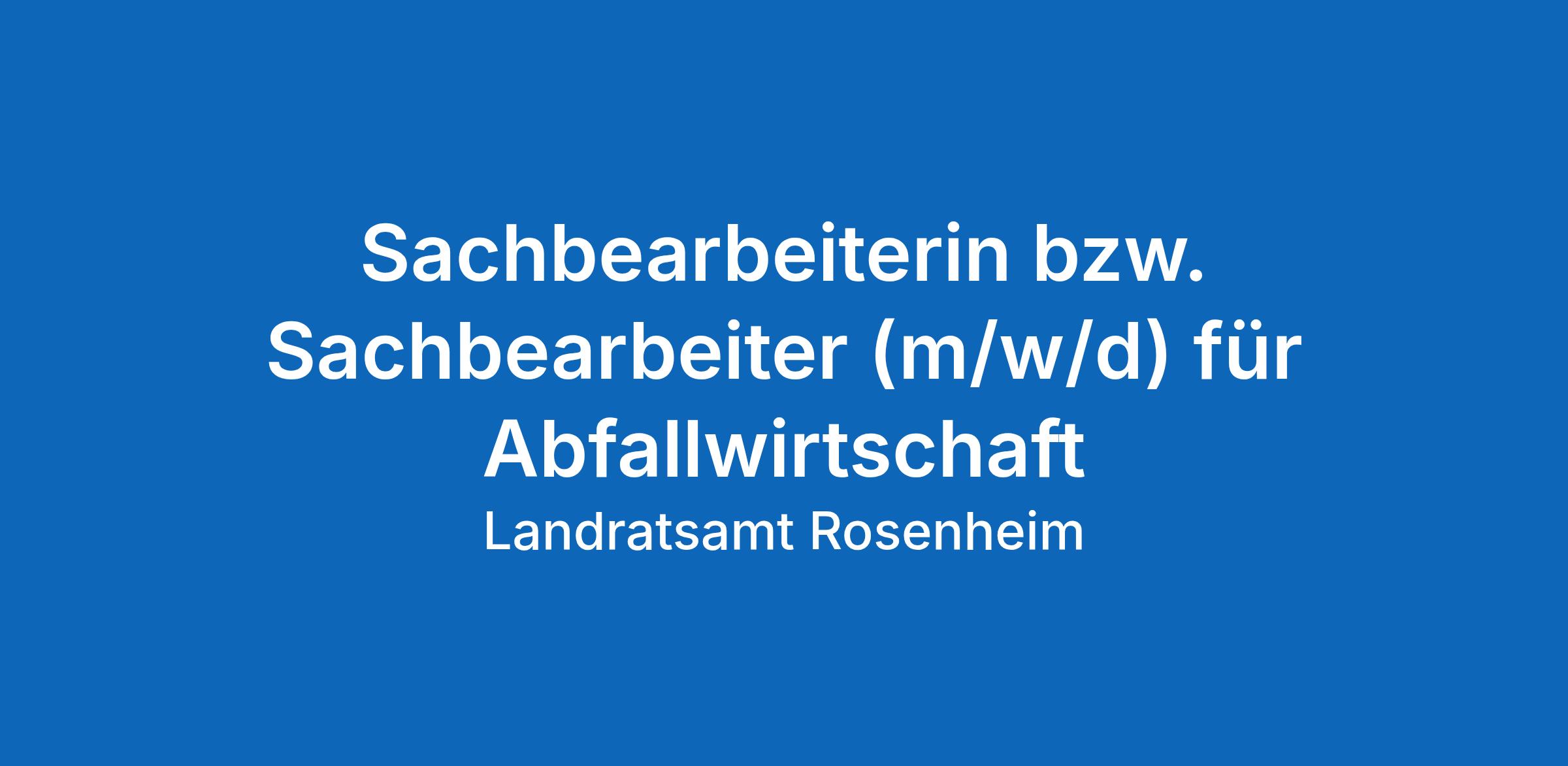 Der Landkreis Rosenheim sucht für das Sachgebiet 43, Gruppe 431 – Verwaltung Kreislaufwirtschaft zum nächstmöglichen Zeitpunkt