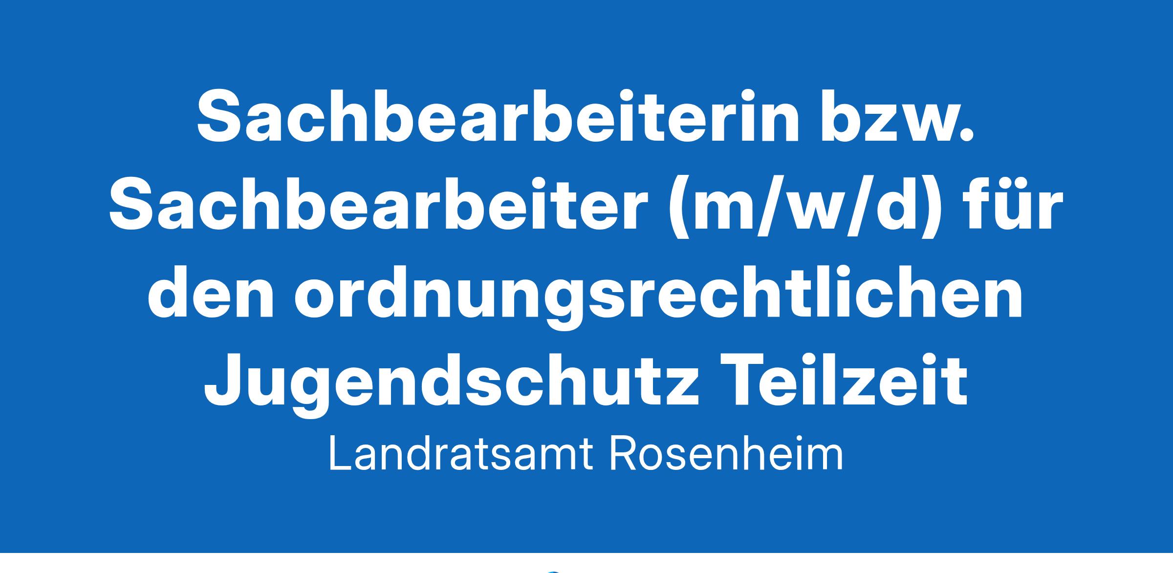 Der Landkreis Rosenheim sucht für das Sachgebiet 23, Gruppe 238 „Kommunale Jugendarbeit“ zum nächstmöglichen Zeitpunkt eine Sachbearbeiterin bzw. einen Sachbearbeiter (m/w/d) für den ordnungsrechtlichen Jugendschutz