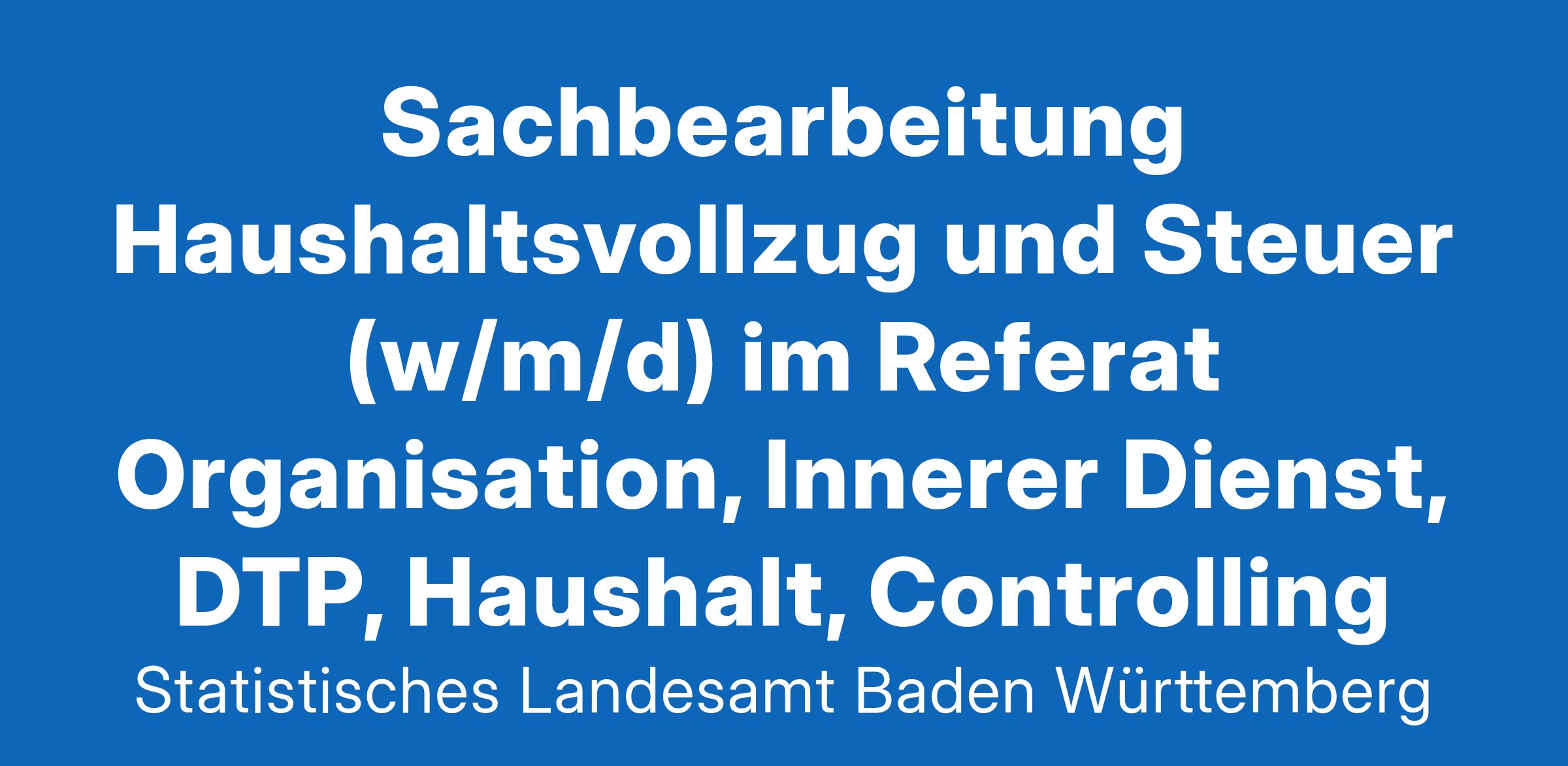 Zahlen schaffen Wissen: Als größter Informationsdienstleister des Landes Baden-Württemberg erheben wir objektiv und neutral Daten zu allen wichtigen Lebenslagen. Unsere Arbeit ist die Basis für Analysen und Entscheidungen in Politik, Wirtschaft und Wissenschaft. Als Sachbearbeitung für Haushaltsvollzug und Steuer sind Sie für die finanzielle und steuerliche Abwicklung von Geschäftsvorfällen im Rahmen des Staatshaushaltsplans Baden-Württemberg tätig.