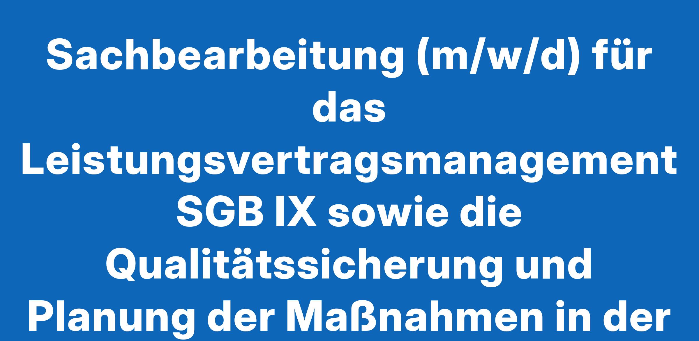 Sachbearbeitung (m/w/d) für das Leistungsvertragsmanagement SGB IX sowie die Qualitätssicherung und Planung der Maßnahmen in der Eingliederungshilfe