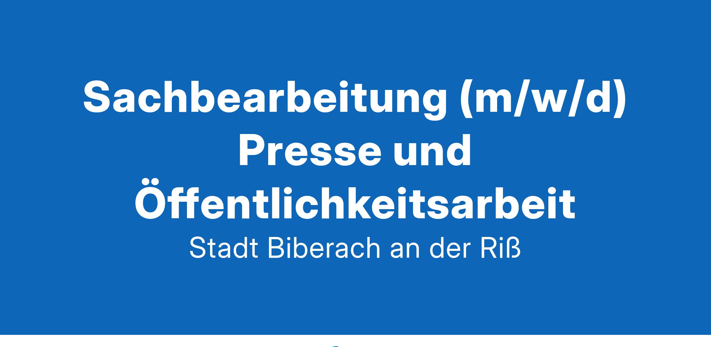 Die Große Kreisstadt Biberach an der Riß (rund 35 000 Einwohner) ist eine reizvolle Stadt mit großer Wirtschaftskraft und vielfältigem, anspruchsvollem Kulturleben im Herzen Oberschwabens. Es sind sämtliche Kinderbetreuungseinrichtungen, Schularten und moderne Freizeiteinrichtungen in weit überdurchschnittlicher Qualität vor Ort. In unserem Amt Gremien, Kommunikation, Bürgerengagement ist folgende Stelle unbefristet zu besetzen: Sachbearbeitung (m/w/d) Presse und Öffentlichkeitsarbeit Bei uns führen Sie folgende Tätigkeiten aus: Redaktionelle Betreuung des amtlichen Mitteilungsblatts „Biberach Kommunal“ Verfassen von Pressemitteilungen zu verschiedenen kommunalen Themen Zeitliche Koordination von Beiträgen Protokollführung in Gremiumssitzungen Sie erfüllen folgende Voraussetzungen: Abschluss als Bachelor of Arts – Public Management, im Bereich Journalismus, Verwaltungswissenschaft oder Kommunikationswissenschaft oder eine vergleichbare Qualifikation Gute schriftliche und mündliche Kommunikationsfähigkeiten Gespür für relevante kommunale Themen Wir bieten Ihnen: Eine Anstellung im Beamtenverhältnis bis Besoldungsgruppe A 11 bzw. im Beschäftigungsverhältnis bis Entgeltgruppe 9c TVöD Ein umfassendes Personalentwicklungskonzept mit fachlichen und persönlichen Fort- und Weiterbildungsmöglichkeiten Ein attraktives Gesundheitsmanagement mit Fitnesskursen, Präventionsmaßnahmen und Vergünstigungen, einen Zuschuss zum Jobticket und JobRad, flexible Beschäftigungsmodelle zur Vereinbarkeit von Beruf und Familie sowie Homeoffice-Regelungen Eine zusätzliche Altersvorsorge des öffentlichen Dienstes Sie sind interessiert? Wir freuen uns auf Ihre Bewerbung über unsere Karrierehomepage www.stadt-biberach-mein-beruf.de bis 19. Februar 2025. Für Fachfragen steht Ihnen die Leiterin des Amtes Gremien, Kommunikation, Bürgerengagement, Frau Appel, Telefon 07351 51-299, gerne zur Verfügung. STADT BIBERACH AN DER RIß Hauptamt – Sachgebiet Personal Frau Bopp Telefon 07351 51-633