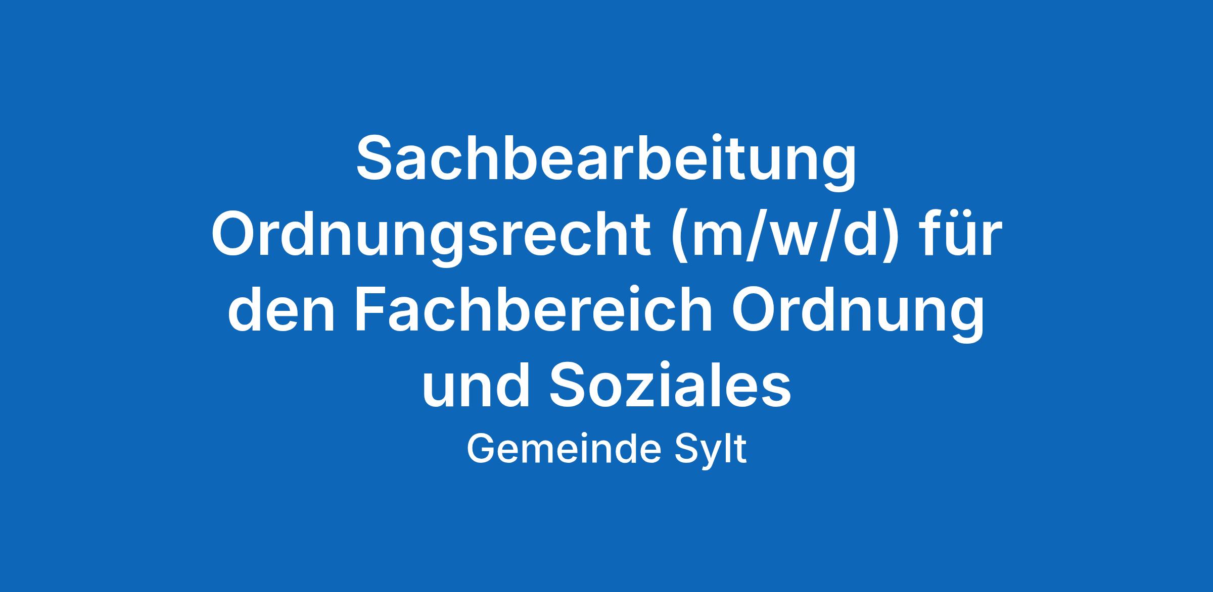 Die Gemeinde Sylt sucht für den Fachdienst 3.2 Ordnungsrecht im Fachbereich 3 – Ordnung und Soziales zum nächstmöglichen Zeitpunkt eine/einen